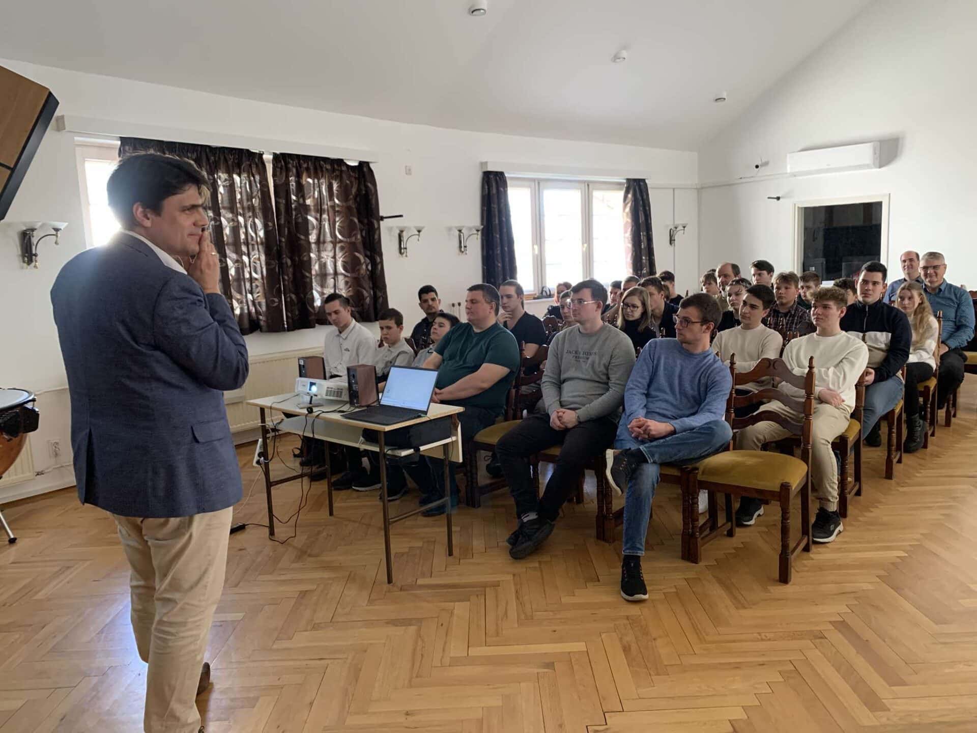 A csapat tagjai közül elsőként ifj. Bazsinka József tubaművész tartott előadást a rézfúvós kamarazene történetéről és fejlődéséről. Megismerhették, hogy Magyarországon hogyan alakult a rézfúvós kamarazenekarok fejlődése, archív interjúrészleteket-, illetve zenei felvételeket hallhattak, hogyan játszottak a 60-as, 70-es években az elődök, illetve minek köszönhető a 80-as években az ugrásszerű fejlődés, és hogy kik voltak ennek a motorjai.