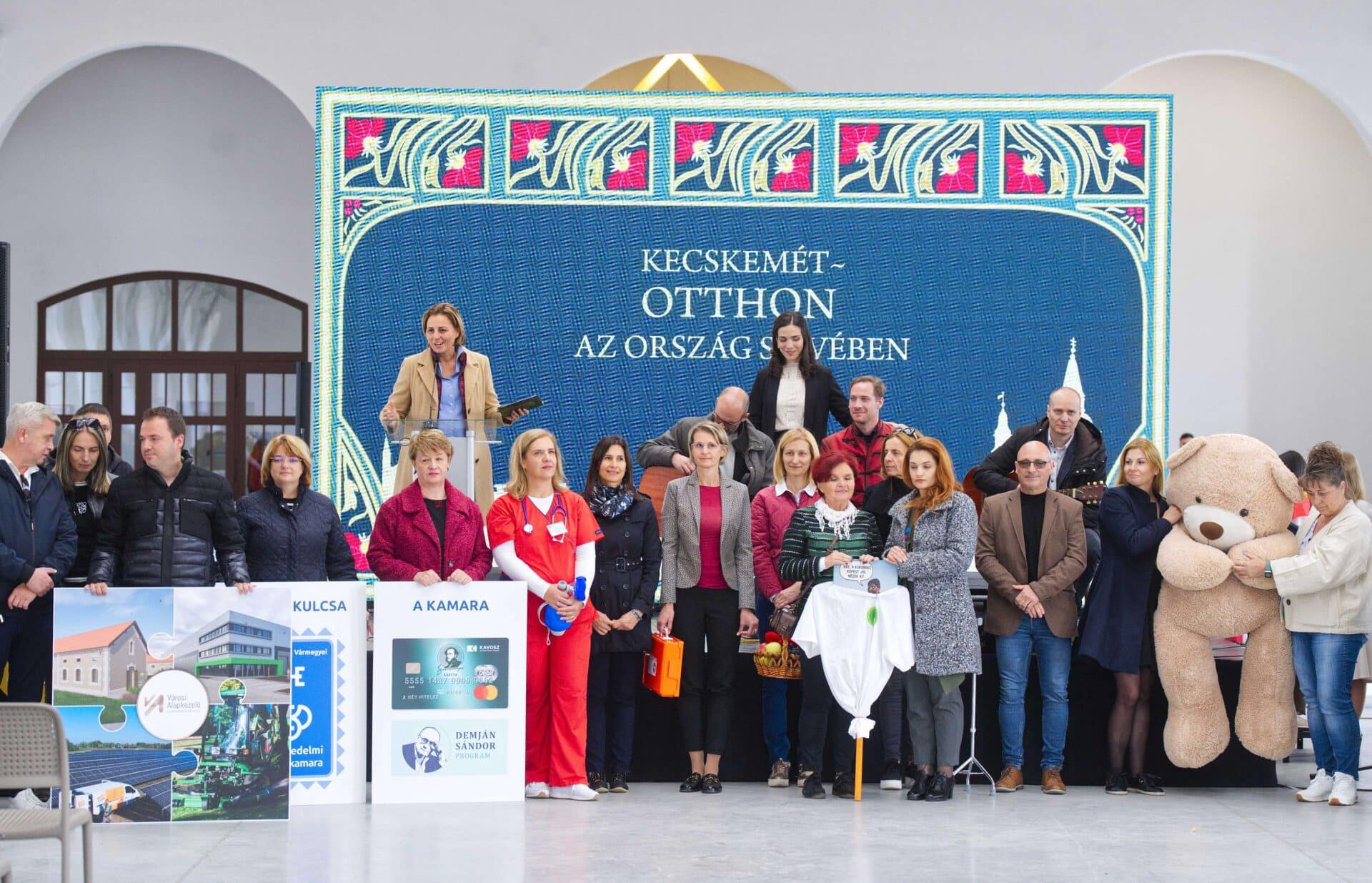 Majd a polgármester megemlítette, hogy folyamatosan fejlődik a város, az egyetem további építése elől elhárultak a gondok, a Kada középiskola hat épülete újul meg, hamarosan átadnak egy új játszóteret, a Kenter közelében új szórakozó hely is rengeteg embert vonz. Kecskemét vezetőjének a beszéde után bevonultak a városi szervezetek képviselői, az egyetem külhoni diákjai egy-egy nemzeti zászlóval, mintegy szimbolizálva a város egységét, és sok színűségét. Majd bemutatták azt a kisfilmet, amely azonnal arra készteti az érdeklődőt, hogy megnyissa Kecskemét digitális kapuját a - https://otthon.kecskemet.hu/ - honlapot. A rendezvény fogadással ért véget.