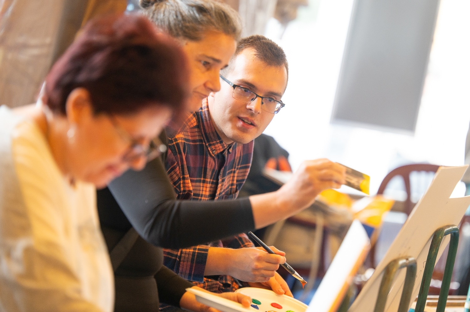 Még egy kisbaba is ecsetet kapott a kezébe ma délben, amikor elkezdődött a 15. PsychArt 24 Művészeti Maraton az ifjúsági otthon tükörtermében. Az idei évben már kilenc városban, köztük Kecskeméten gyűltek össze hivatásos és amatőr művészek, pszichiátriai betegséggel élők és segítő szakemberek, hogy együtt egy közösségi térben alkotva képekben ragadják meg az őket körülvevő világot.