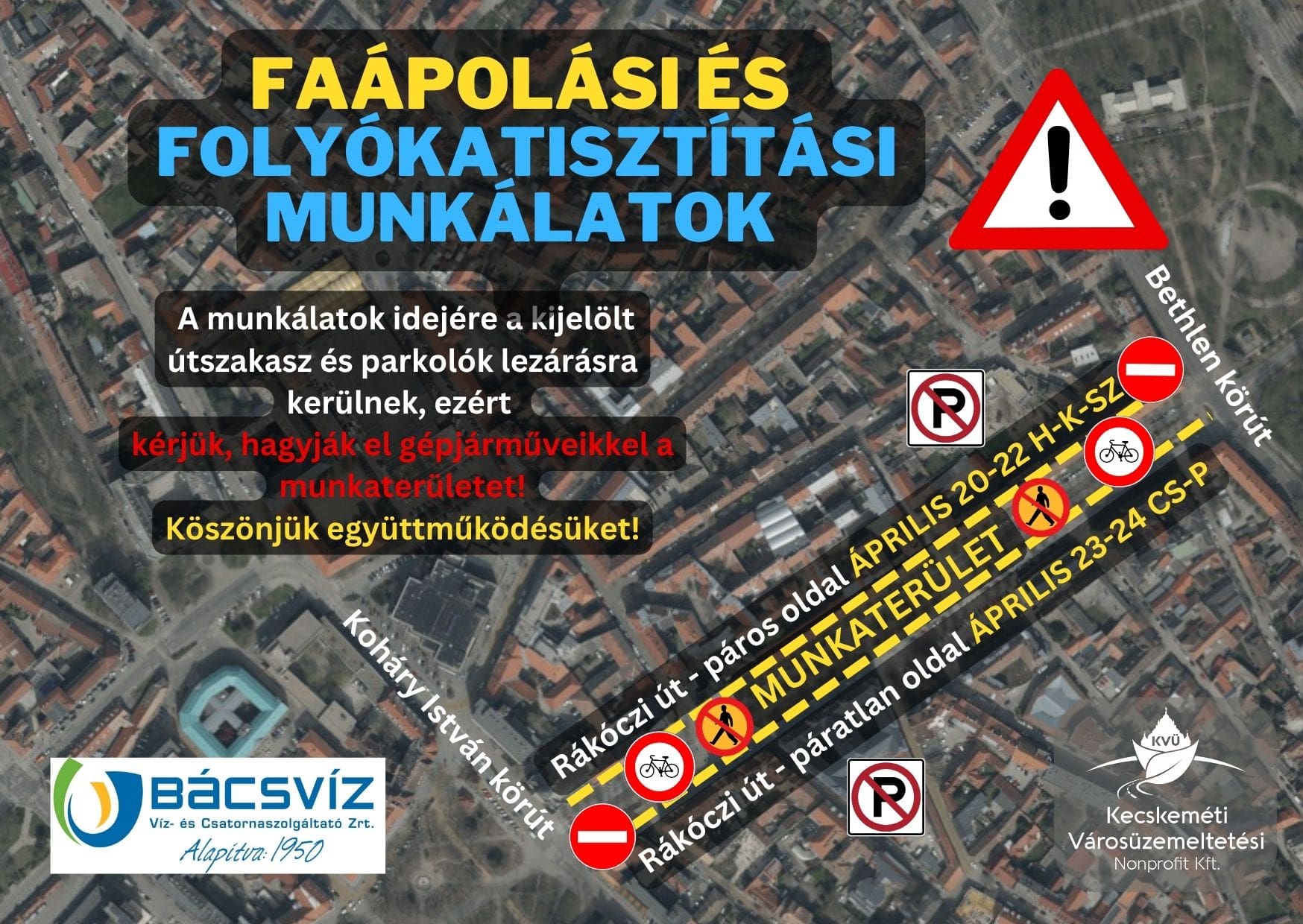 Mindkét szolgáltató köszöni a lakosság szíves együttműködését és türelmét, valamint kéri a kijelölt parkolók szabadon hagyását! Kérik továbbá a tisztelt közlekedőket, hogy figyeljék a kihelyezett táblákat és tartsák be a megváltozott közlekedési rendet.