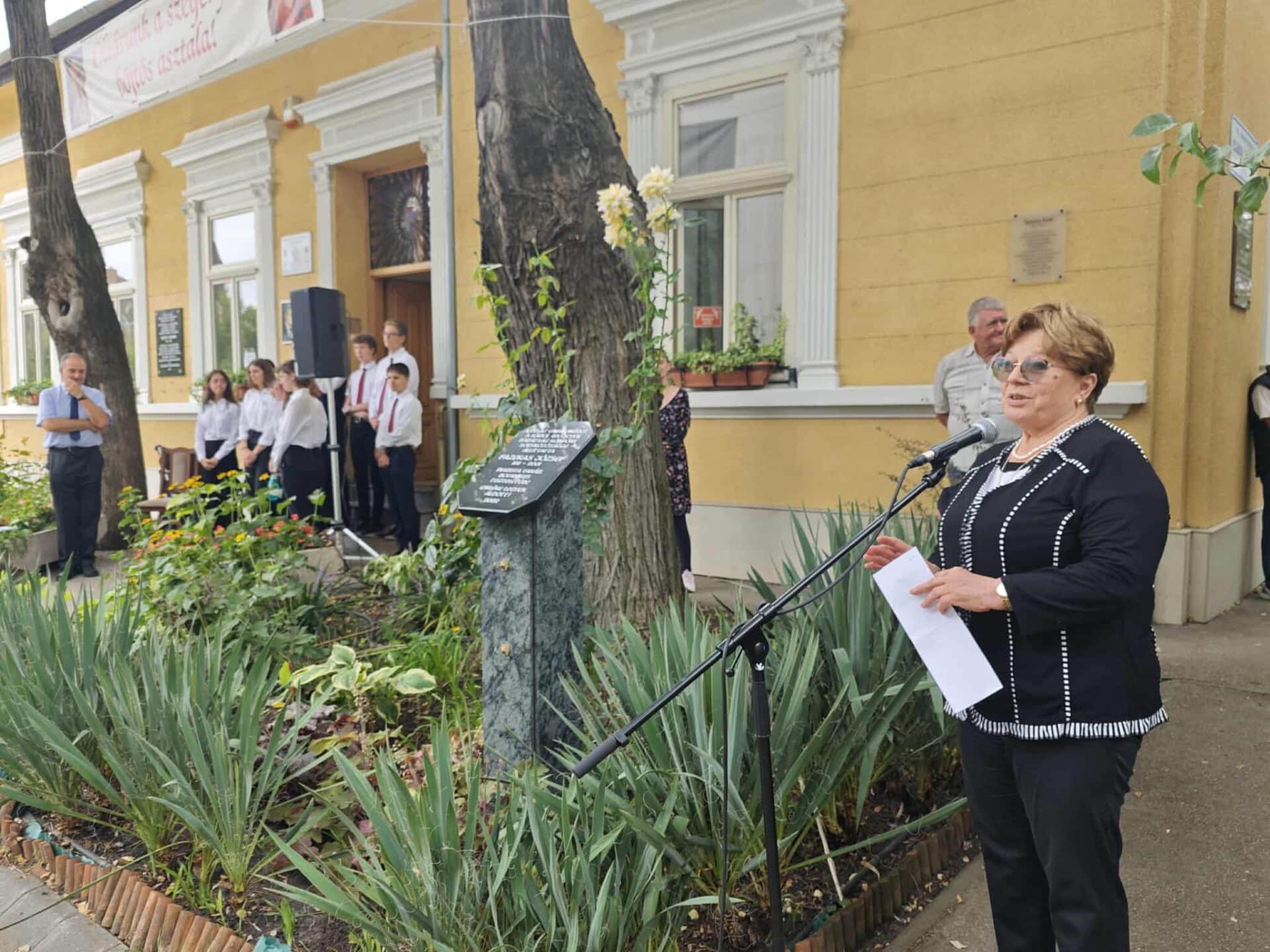 Lévai Jánosné Farkas István Lupus atya visszaemlékezését is megosztotta a jelenlévőkkel. Ebből kiderült, hogy a botanikus kert helyét korábban háborús törmelékek és szemét csúfította, Fazekas tanárúr 12 év szívós munkájával teremtette meg kis paradicsomi kertjét. Neki ugyanis a „Jóisten minden teremtményére gondja volt”.