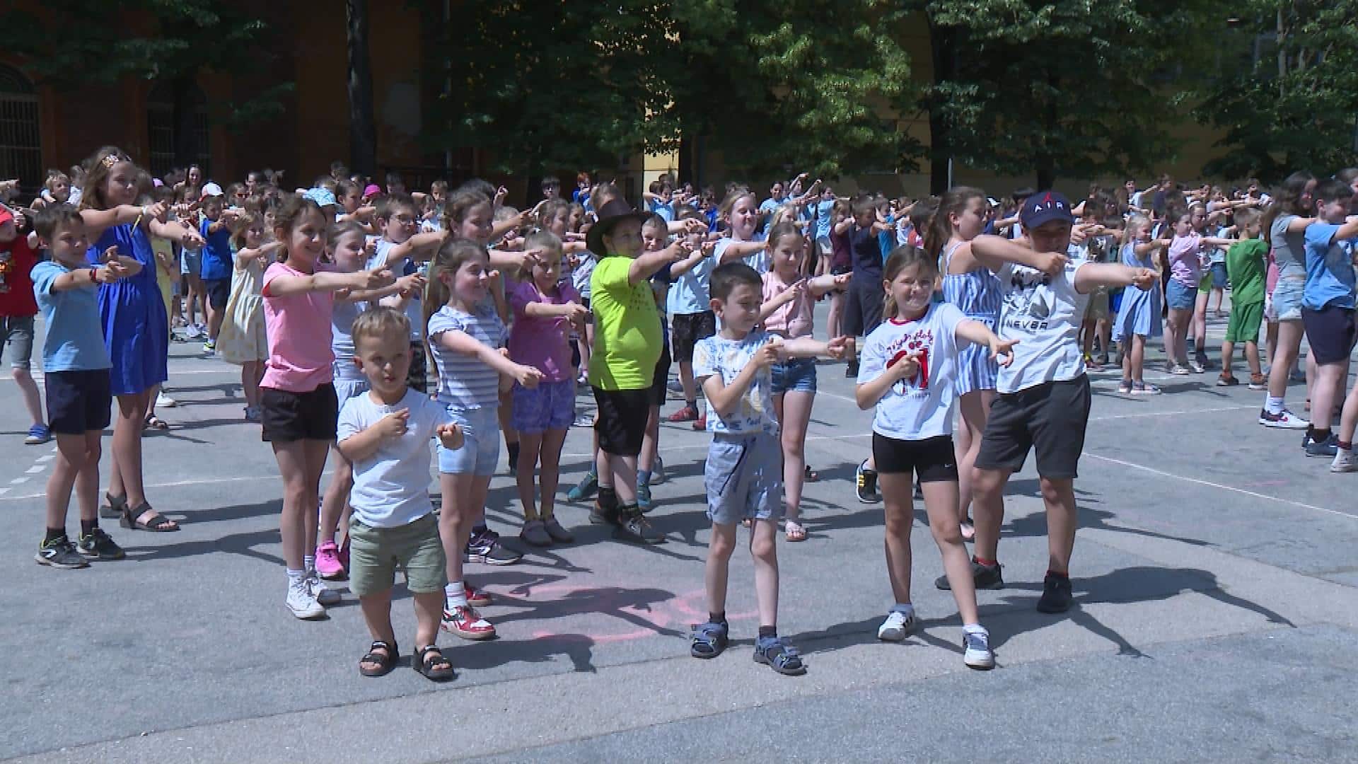 Nagyjából 500 gyermek táncolt egyszerre ma délelőtt a Szent Imre Iskola udvarán. A néptáncos flashmobot azért mutatták be, hogy meglepjék vele az iskola pedagógusait pedagógusnap alkalmából. A szervező Lukácsné Haránt Eszter volt, aki az iskola néptánctanára.