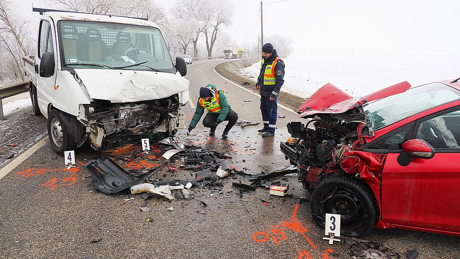 Ketten sérültek meg, amikor frontálisan összeütközött egy személyautó és egy kistehergépkocsi Szentes határában, a 45-ös főúton.
