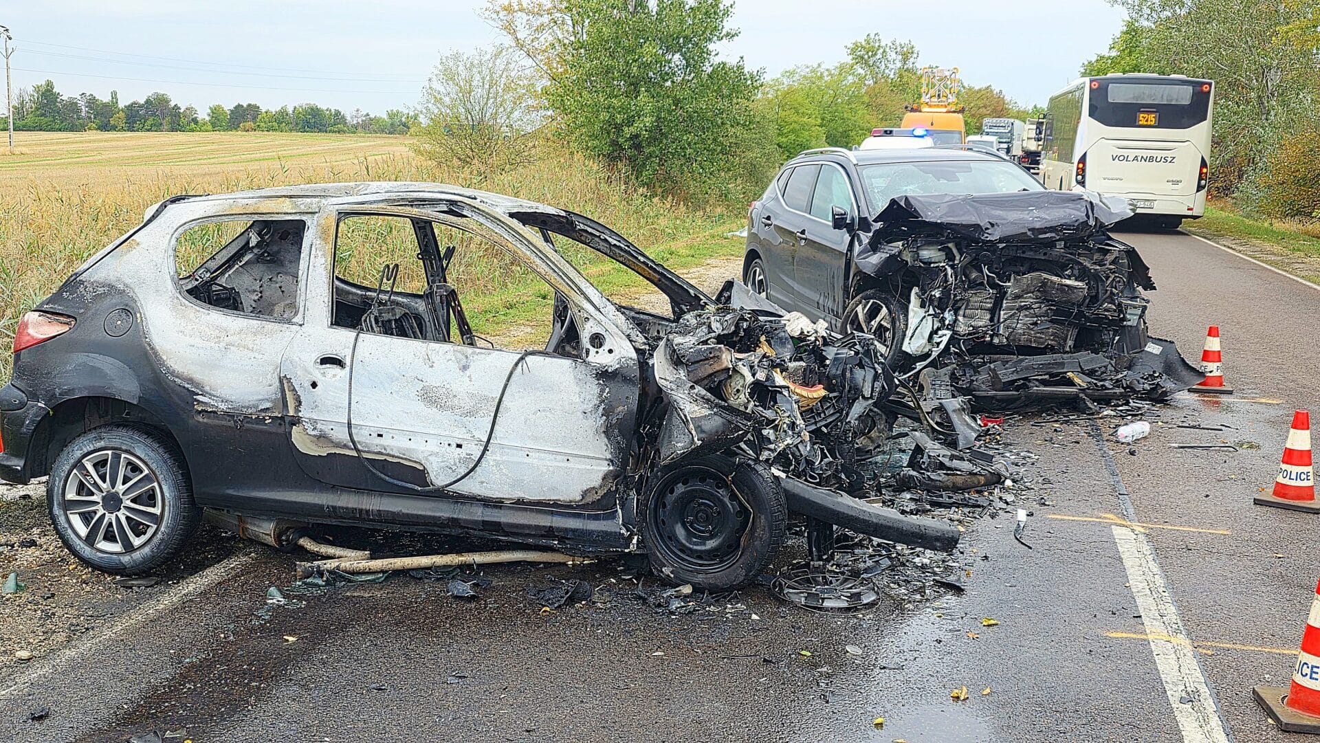 Információnk szerint Kiskunfélegyháza felől haladt a Peugeot, amikor egy bizonytalan vezetés után áttért a szemközti sávba, ahol frontálisan ütközött egy másik személyautóval. A nagy erejű ütközéstől a Peugeot az út szélén keresztben állt meg és kigyulladt, majd teljes terjedelmében égett. Úgy tudjuk, hogy a két gépkocsiban csak a sofőrök ültek, őket súlyos sérülésekkel a mentők szállították kórházba.