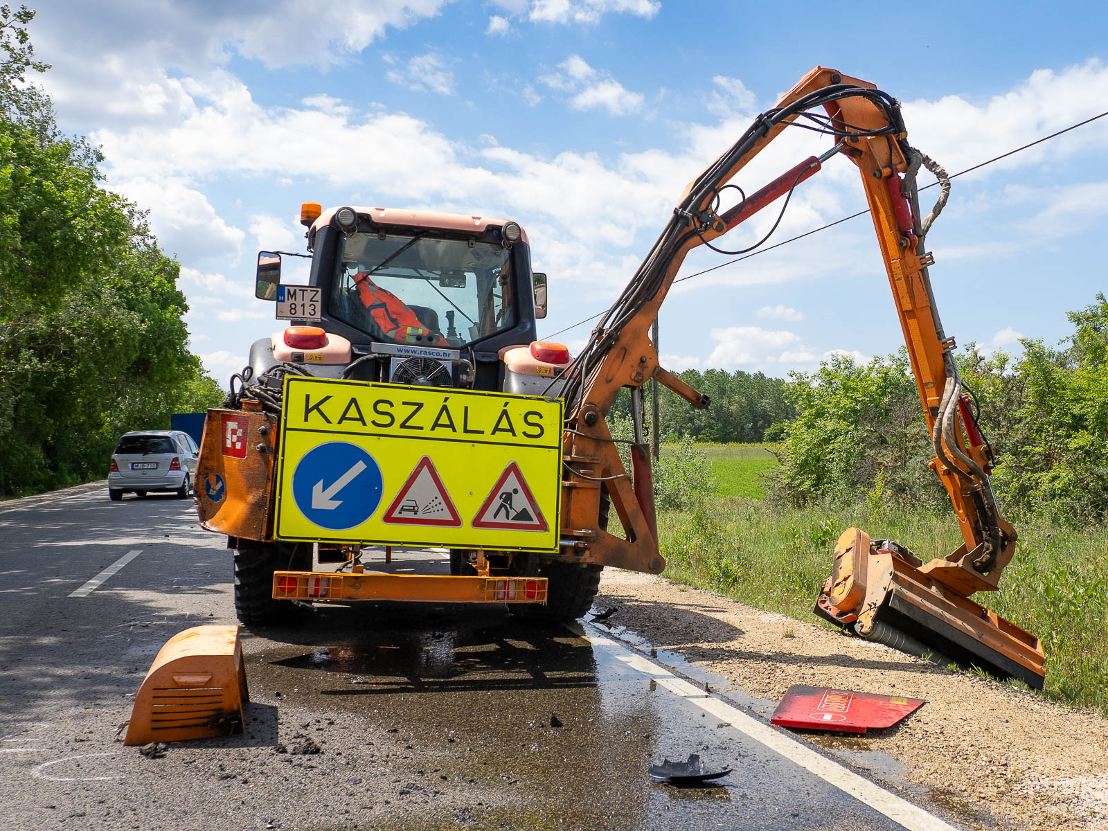 Fűnyíró traktorral karambolozott egy kisteherautó az 54-es főúton