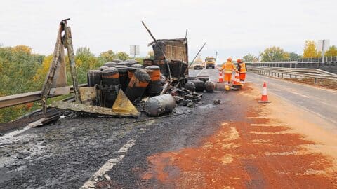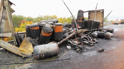 22000 liter motorolajjal gyulladt ki egy kamion pótkocsija