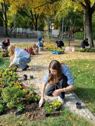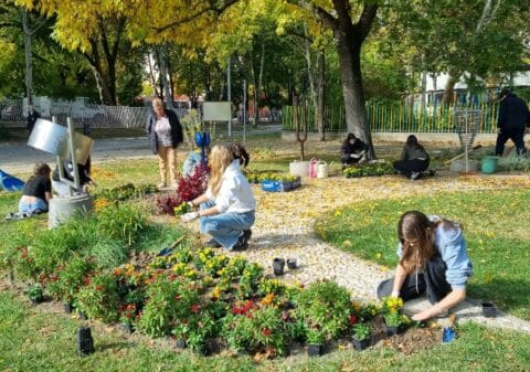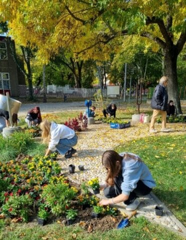 Virágültetés az Érzékelések kertjében