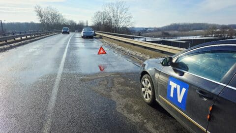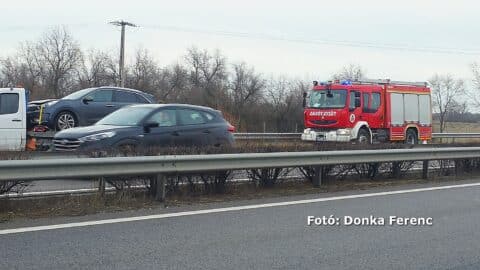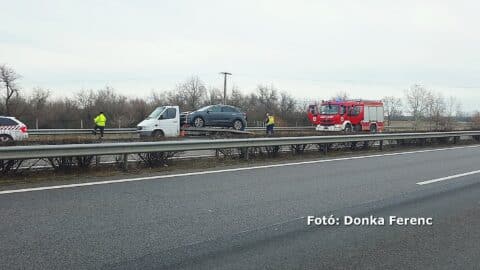 Kétszer is a szalagkorlátnak ütközött egy autó az M5-ösön