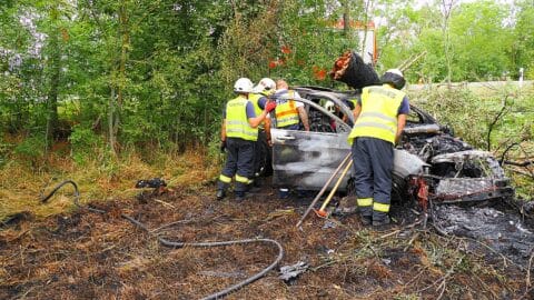 Közútkezelőbe csapódott egy személyautó