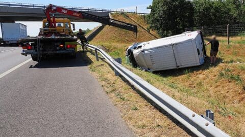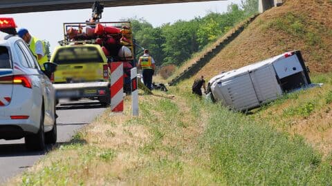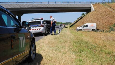 Egy furgon hajtott árokba az M5-ösön Kiskunfélegyháza közelében