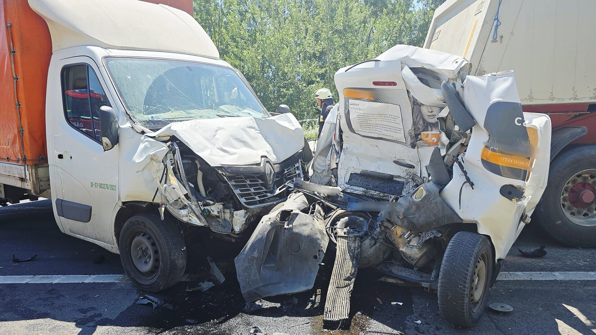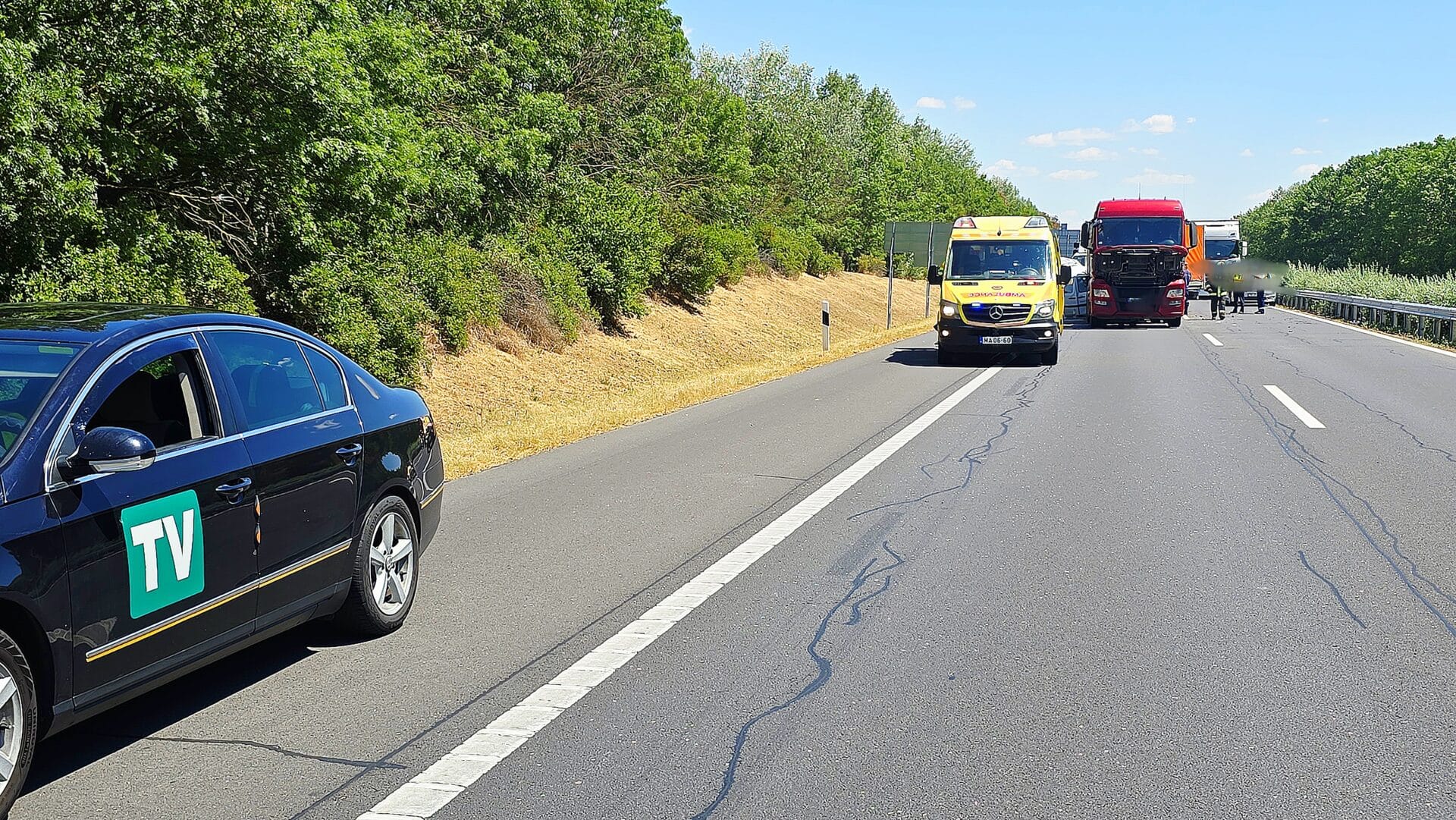 Egy kamion, egy kisteherautó és egy személygépkocsi ütközött össze az M5-ös autópályán, Kecskemétnél, a Budapest felé vezető oldalon.