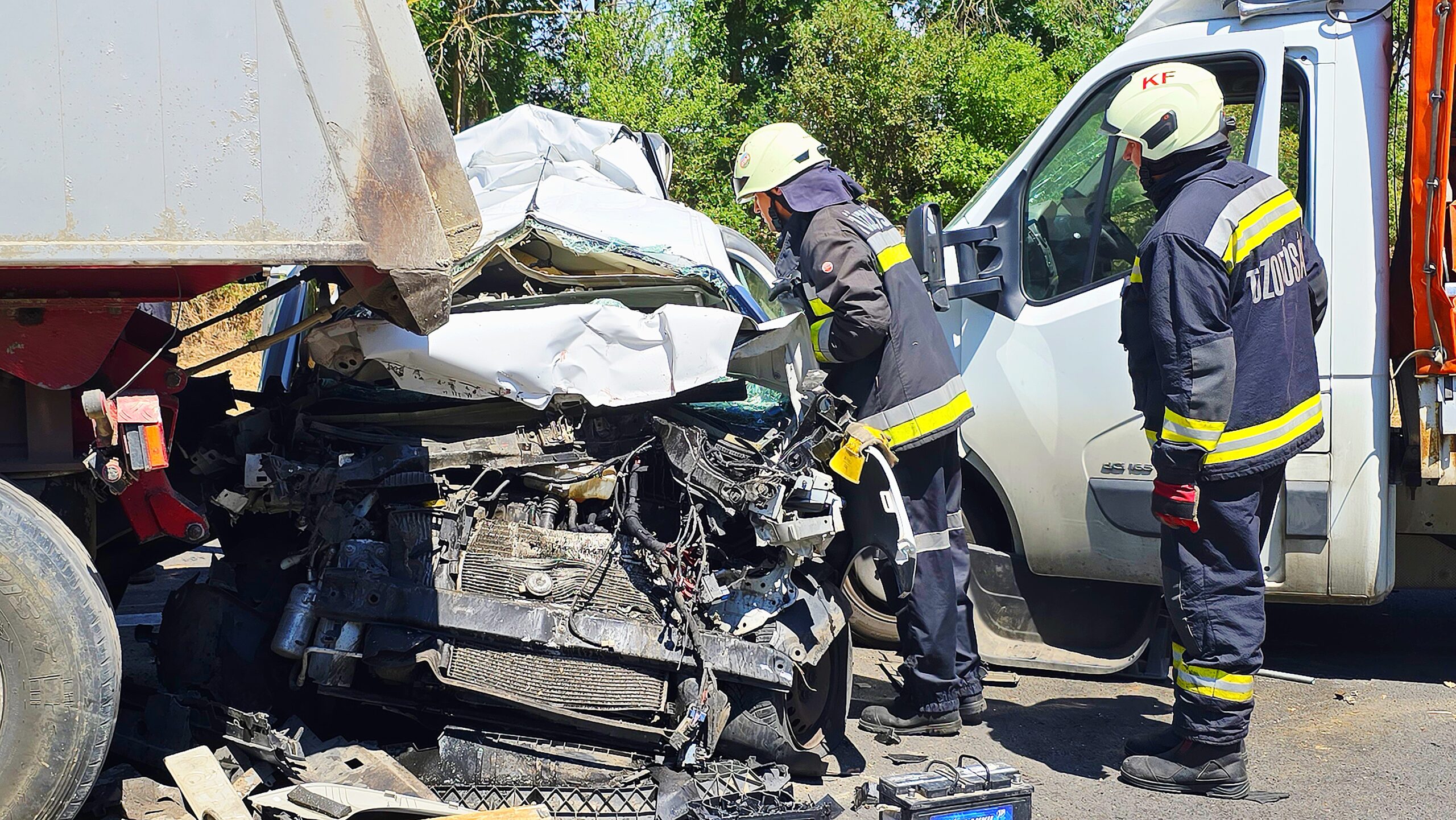 Összeütközött egy kamion, egy kisteherautó és egy személygépkocsi az M5-ös autópálya 92-es kilométerénél, a főváros felé vezető oldalon Kecskemétnél. A kiskunfélegyházi hivatásos tűzoltók végzik a műszaki mentést. A sztráda érintett szakaszát teljes szélességében lezárták.