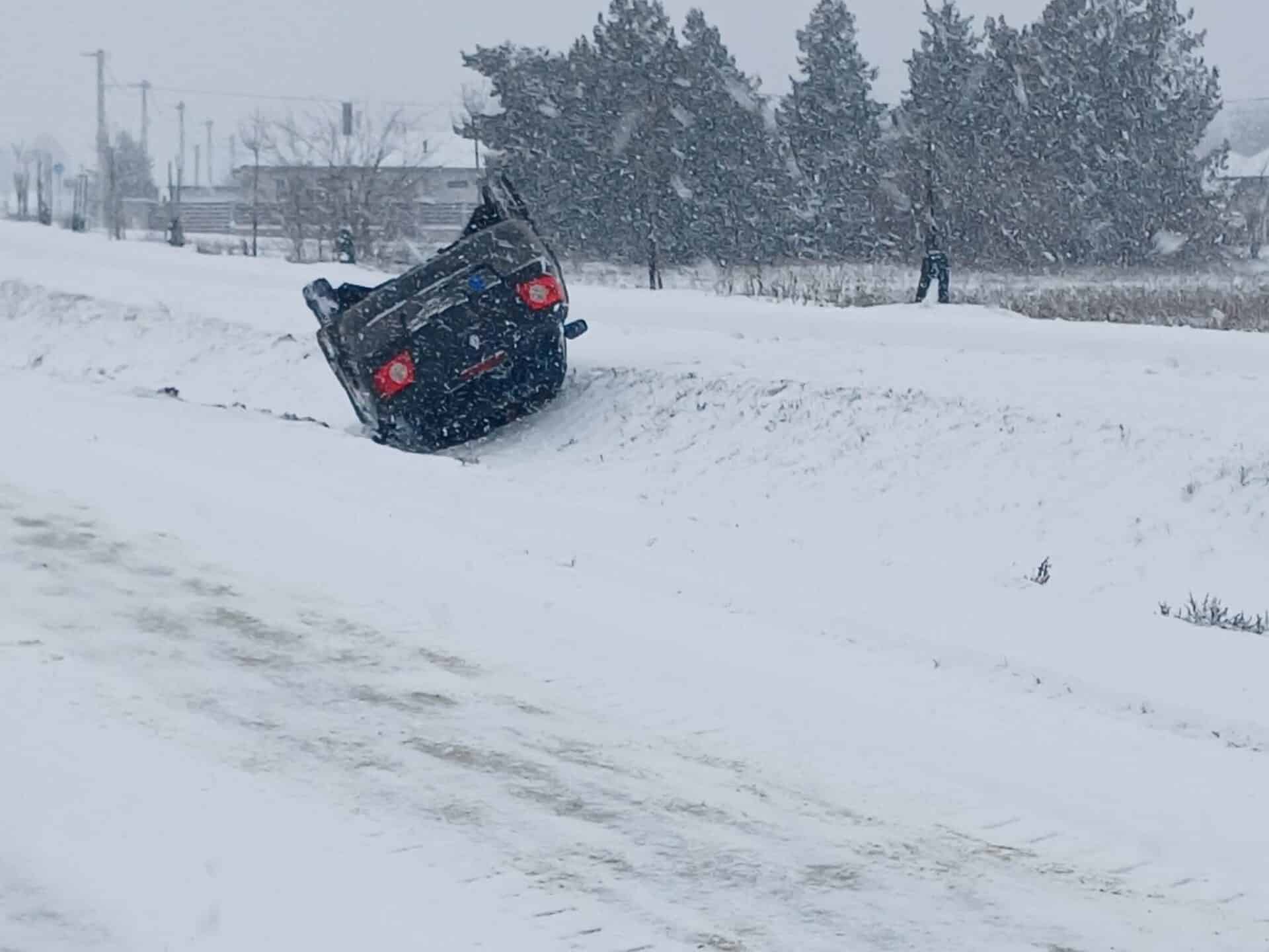 Több baleset is történt a reggeli havazásban, Ballószögön az árokba csúszott és feje tetején állt meg egy autó.