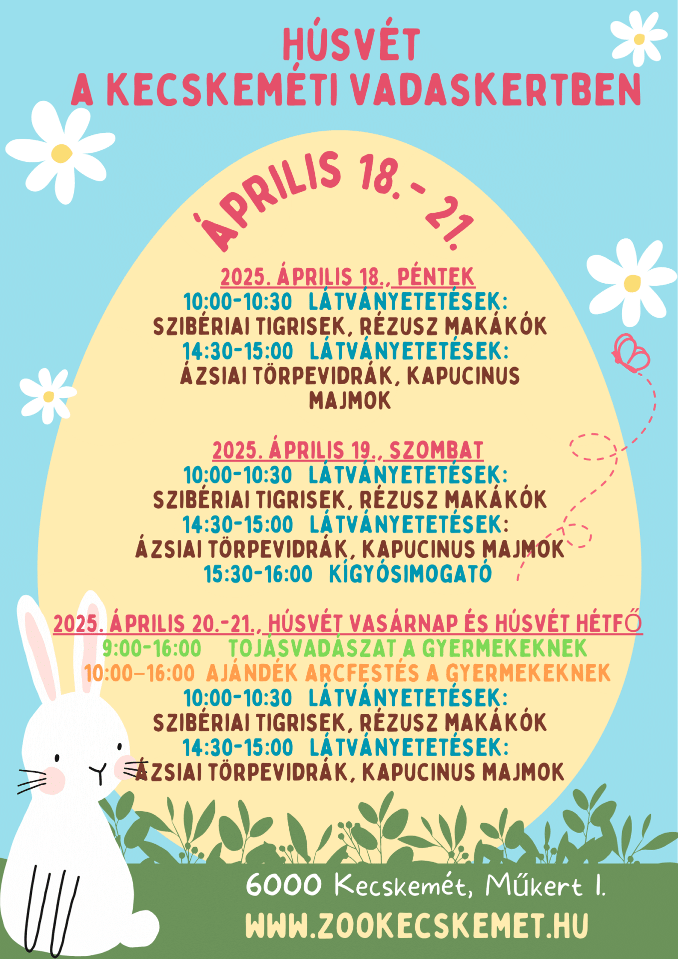Húsvét a Kecskeméti VadaskertbenKÖZLEMÉNY2025. 04. 17., 07:59A HÚSVÉTI ÜNNEPNAPOKON IS SZERETETTEL VÁR A KECSKEMÉTI VADASKERT. #húsvét #Kecskemét #Kecskeméti Vadaskert #látványégetés #tojásvadászat