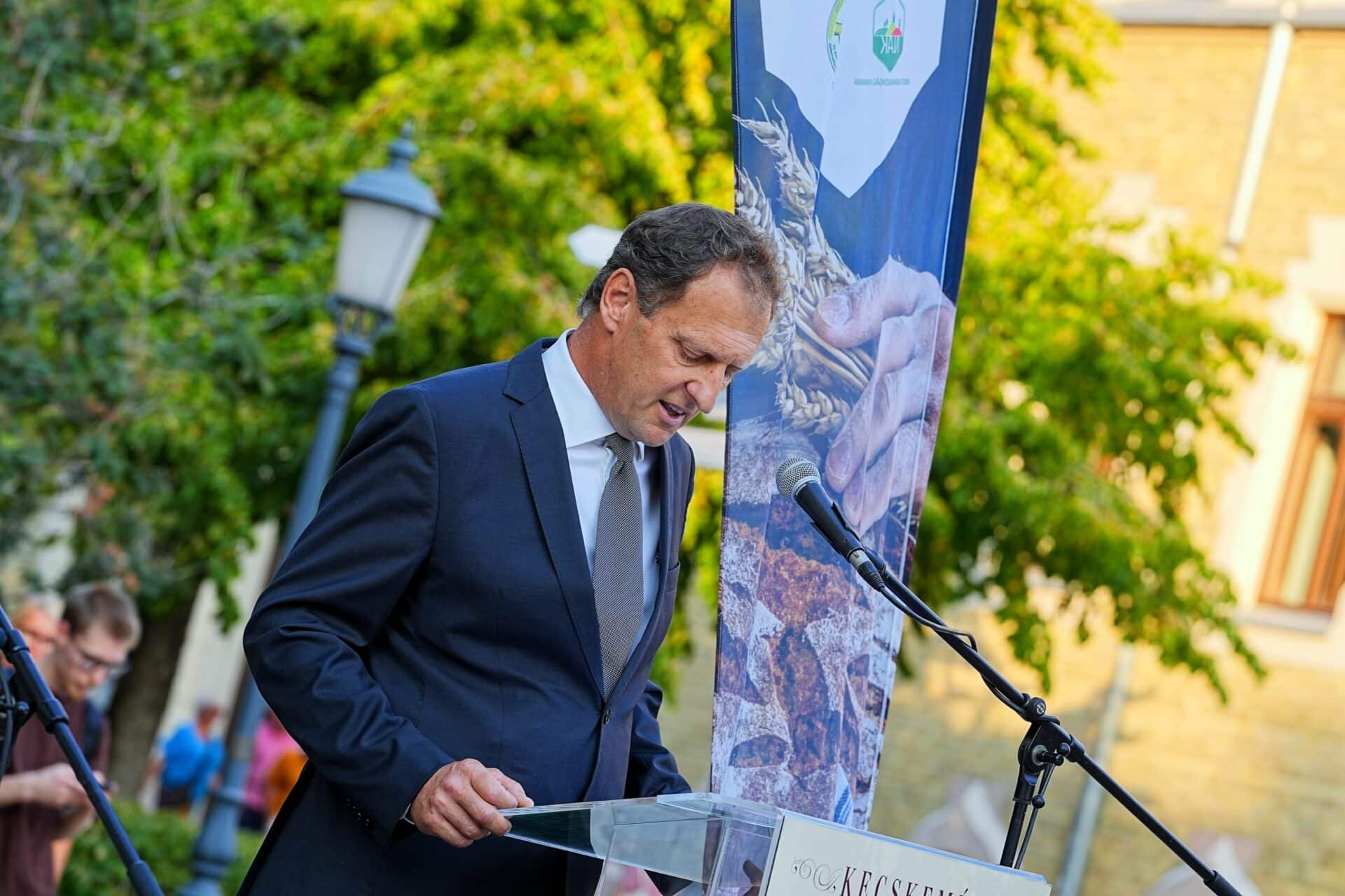 A főigazgató azt is leszögezte, nekünk, magyaroknak a gyökereinkkel kell válaszoljunk az élet és a világ kihívásaira. A mai nap az új kenyeret is ünnepeljük, melynek kapcsán a NAK Bács-Kiskun Vármegyei Szervezetének alelnöke hangsúlyozta, „A kenyér az életet, a megélhetést és az otthont szimbolizálja. A nemzeti színű szalaggal átkötött kenyérrel fejezzük ki, hogy az élet és a haza összekapcsolódik.” Somodi Ferenc ezt követően ismertette a Magyarok Kenyere Programot.