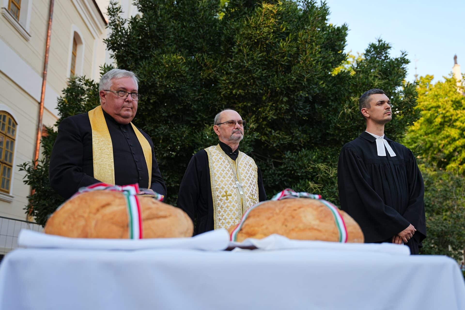 A beszédeket követően Dr. Finta József római katolikus plébános, Kuti József református elnöklelkész, Hajduch-Szmola Patrik evangélikus igazgató lelkész és Feczák László görögkatolikus parókus áldotta meg az új kenyeret. Végül a jelenlévők megkoszorúzták Szent István szobrát. Az ünnepségen közreműködött Kállai Erzsébet énekművész, valamint a Kiskun Huszár és Honvéd Hagyományőr Egyesület. Az eseményt idén is Kecskeméti Megyei Jogú Város Önkormányzat és a Nemzeti Agrárgazdasági Kamara Bács-Kiskun Vármegyei Szervezete szervezte meg.