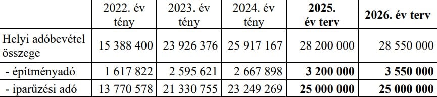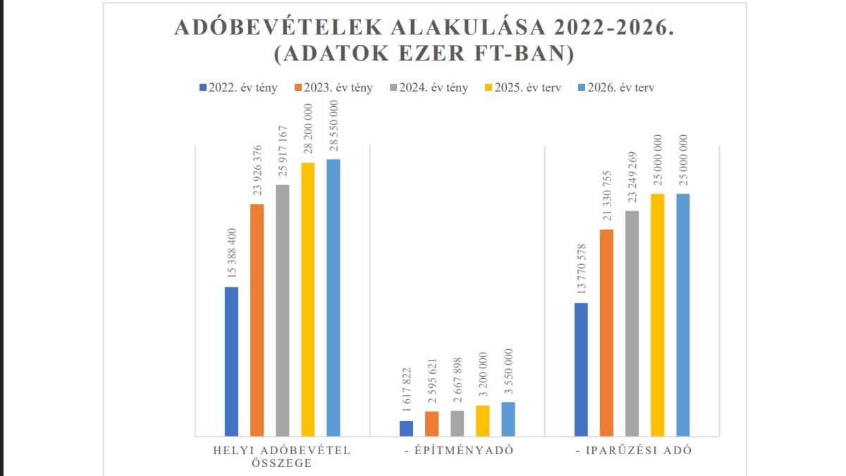 A város jövő évi teljes adóbevétele mintegy 29 milliárd forint lehet, ennek nagy részét a 25 milliárd forintos helyi iparűzési adó teszi ki. A másik nagyobb tétel az építményadó, amely esetében több mint 300 milliós növekedéssel számol a város, vagyis a betervezett összeg több mint 3.5 milliárd forint.