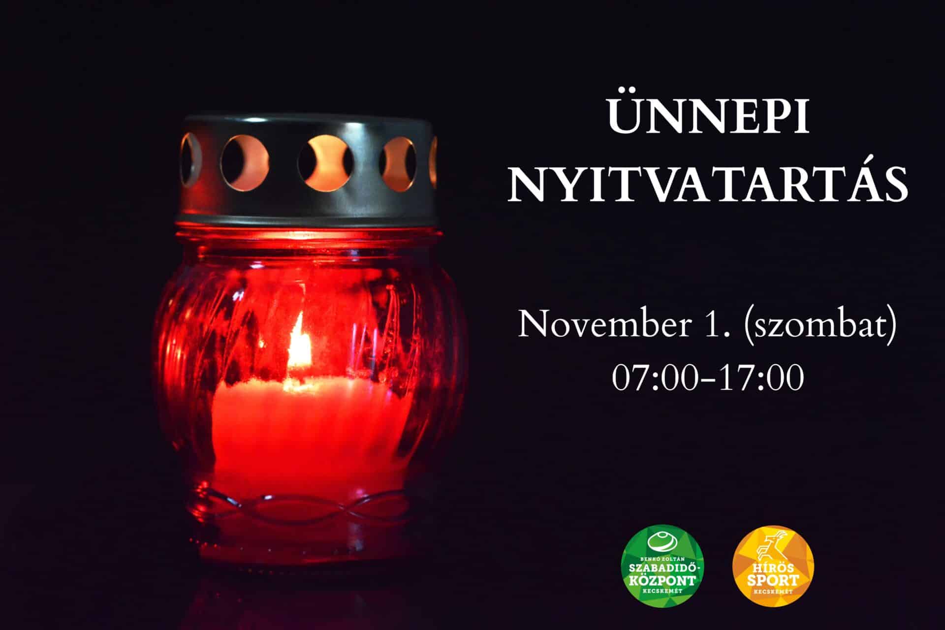 A Benkó Zoltán Szabadidőközpont november 1-jén, szombaton a novemberi nyitvatartás szerint 7:00-17:00 óra között fogadja a látogatókat.