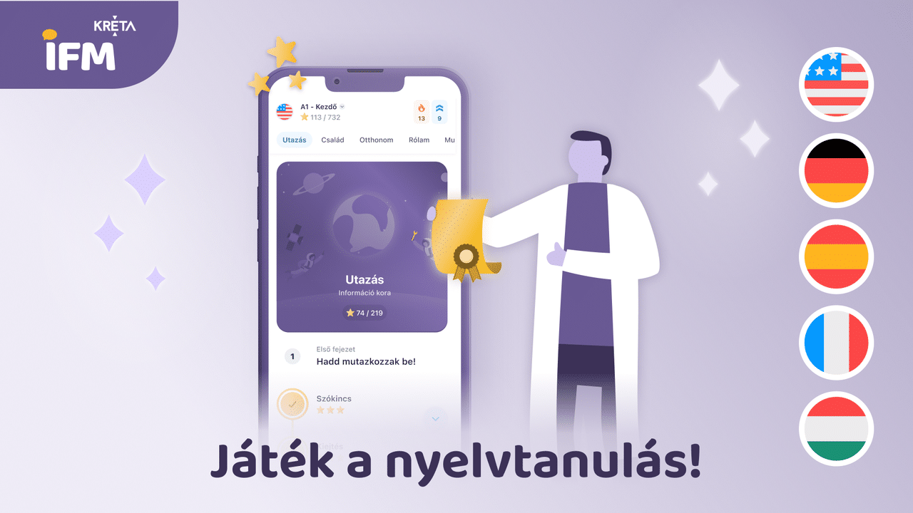 A nyelvtanulási folyamat mélypontjainál hatékony támogatást nyújt a KRÉTA IFM élményalapú rendszere. Az alkalmazás interaktív, játékos feladatai és beszédközpontú szimulációi elősegítik a rendszeres, napi szintű nyelvhasználat kialakulását.