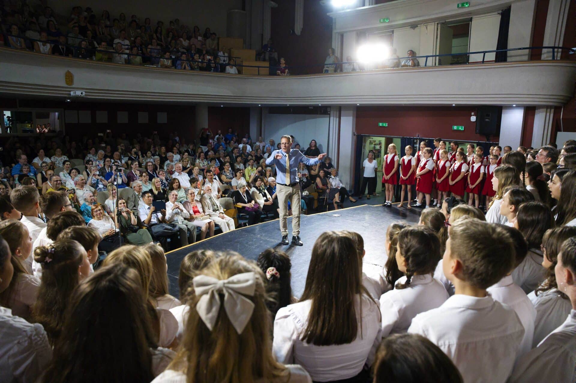 Volt példa erre a közelmúltban. Mint említettem, augusztus negyedikén volt a Kodály Fesztivál keretében egy koncert az iskolában, ahol a kórusaink közül négy adott nagyon nagy sikerű koncertet. Megható, felemelő hangulatú hangverseny volt, ami minden szempontból méltó volt a Kodály Iskola hagyományaihoz. Ezen a koncerten, illetve a délelőtti bemutató órákon ott volt kétszázötven külföldi, akik a Kodály Szimpóziumra érkeztek, és ott voltak a Nemzetközi Kodály Társaság vezetői és tagjai is. Válogatott szakmai közeg volt, akik látták és hallották a koncertet. Nagyon sok gratulációt kaptunk, sok meghatott könnyet láttunk az összkar után. Úgy éreztem, hogy egy kicsit kezdünk magunkra találni, és képesek vagyunk betölteni az origó szerepet. Fontos, hogy méltónak érezzük magunkat a szerepre, hogy büszkék legyünk arra, hogy mi ezt csinálhatjuk, és fontos, hogy ezt meg akarjuk megmutatni a világnak. És ehhez nagyon kellenek az ilyen ünnepi és különleges alkalmak.