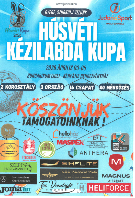 A Judória Sport szervezésében ezen a hétvégén kerül megrendezésre az U12 és U14-es fiú korosztályban a húsvéti kézilabda kupa, melyen 8-8 csapat vesz résztk