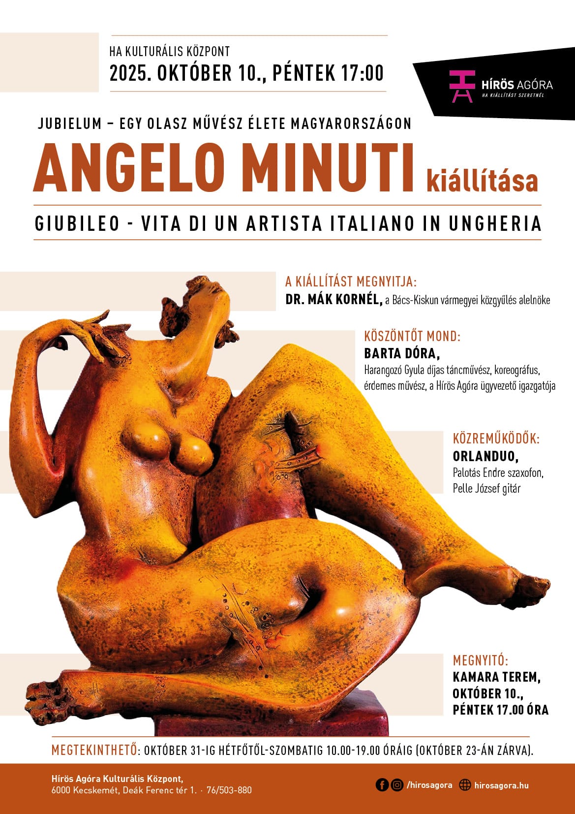 Angelo Minuti szobrászművész kiállítása nyílik a Hírös Agóra nagytermében