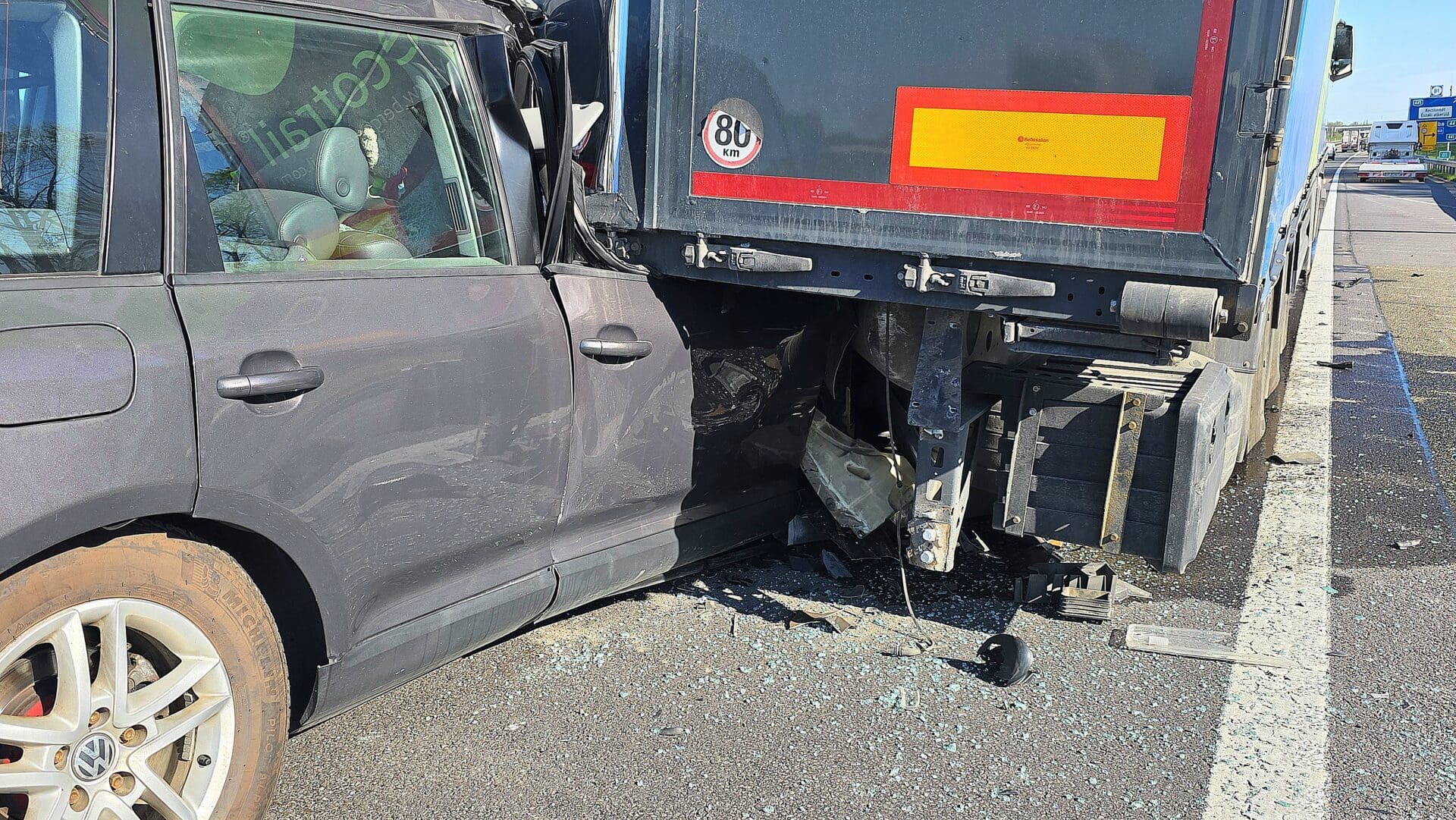 Összeütközött egy teherautó és egy trélert vontató személygépkocsi az M5-ös autópálya Budapest felé vezető oldalán, Kecskemét közelében, a 81. kilométernél. A műszaki mentést végző kecskeméti hivatásos tűzoltók áramtalanítják a személyautót. Az érintett sztrádaszakaszon, rendőri irányítás mellett, félpályán halad a forgalom, torlódásra kell számítani.
