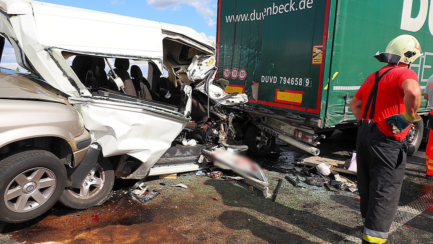 Autószállító kisbusz csapódott egy kamionba az M5-ösön, hét embert szabadítottak ki a roncsok közül