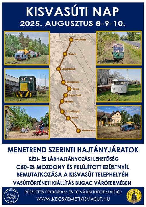A kisvasúti nap részletes programja és további információk: https://kecskemetikisvasut.hu/hirek/#hirek_2025_07_17