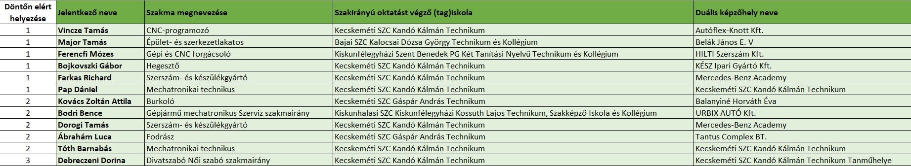 A 2025. április 28-án és 29-én lezajlott XVIII. Szakma Sztár Fesztiválon a döntőbe bejutott 12 Bács-Kiskun vármegyei versenyző mindegyike dobogós helyezést ért el.