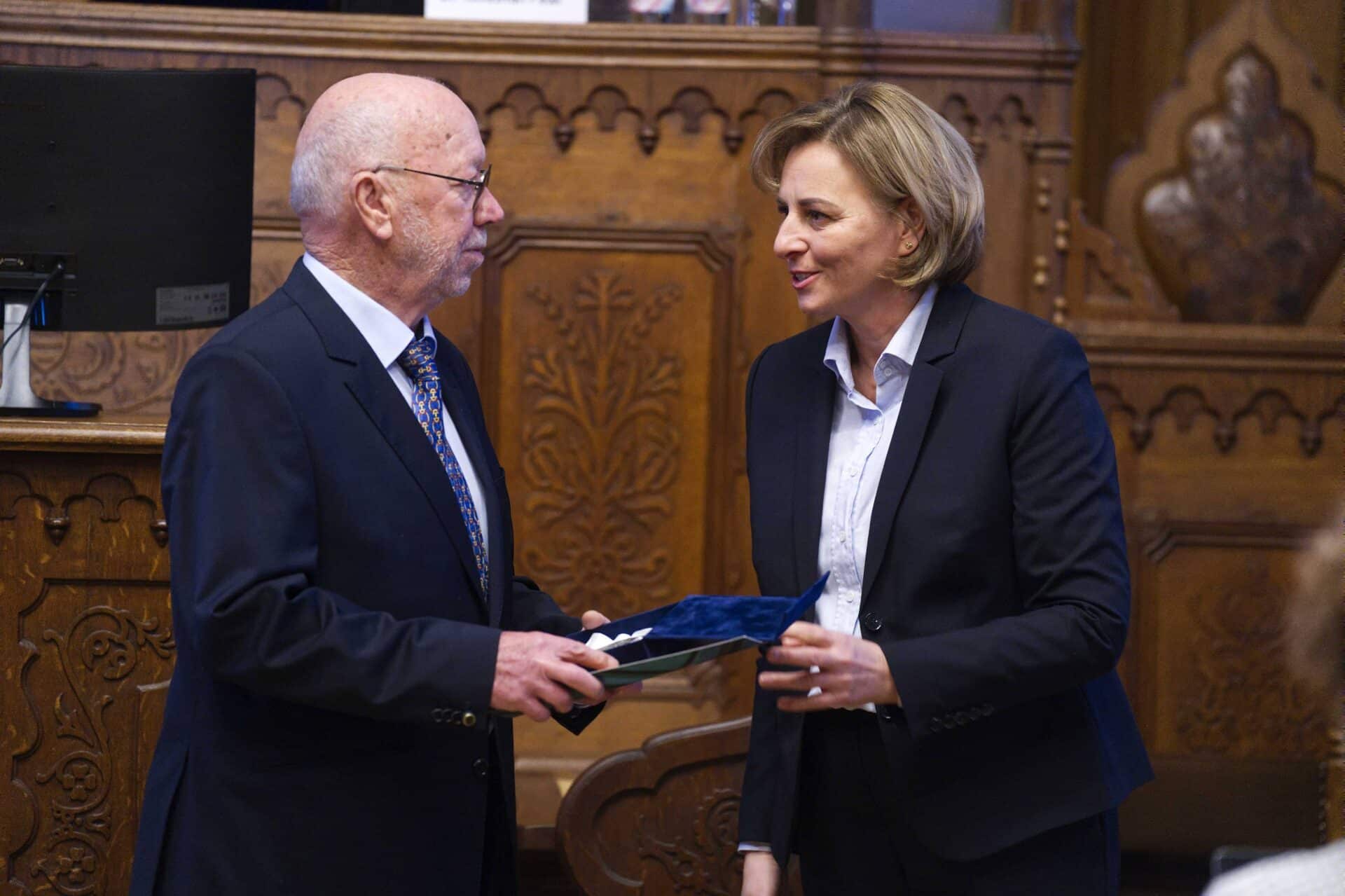 Az év utolsó közgyűlését rendhagyó módon kitüntetések átadásával nyitotta meg a városvezetés. Az ünnepi hangulatról Csík János és Vadas László népzenészek gondoskodtak, akik egy adventi népénekkel köszöntötték a megjelenteket. Ezután következett a díjátadó. Elsőként Herbert Rupp, a Knorr-Bremse kecskeméti gyárának korábbi termelési igazgatója vehette át az emlékérmet. A szakember Augsburgból költözött Kecskemétre, és már 30 éve él a hírös városban. Vezetése alatt az üzem a térség egyik meghatározó munkaadójává vált, és országosan is elismert műszaki és gyártási kultúrát alakított ki. Több évtizedes munkájával jelentősen hozzájárult Kecskemét gazdasági erősödéséhez és ipari presztízsének növekedéséhez.