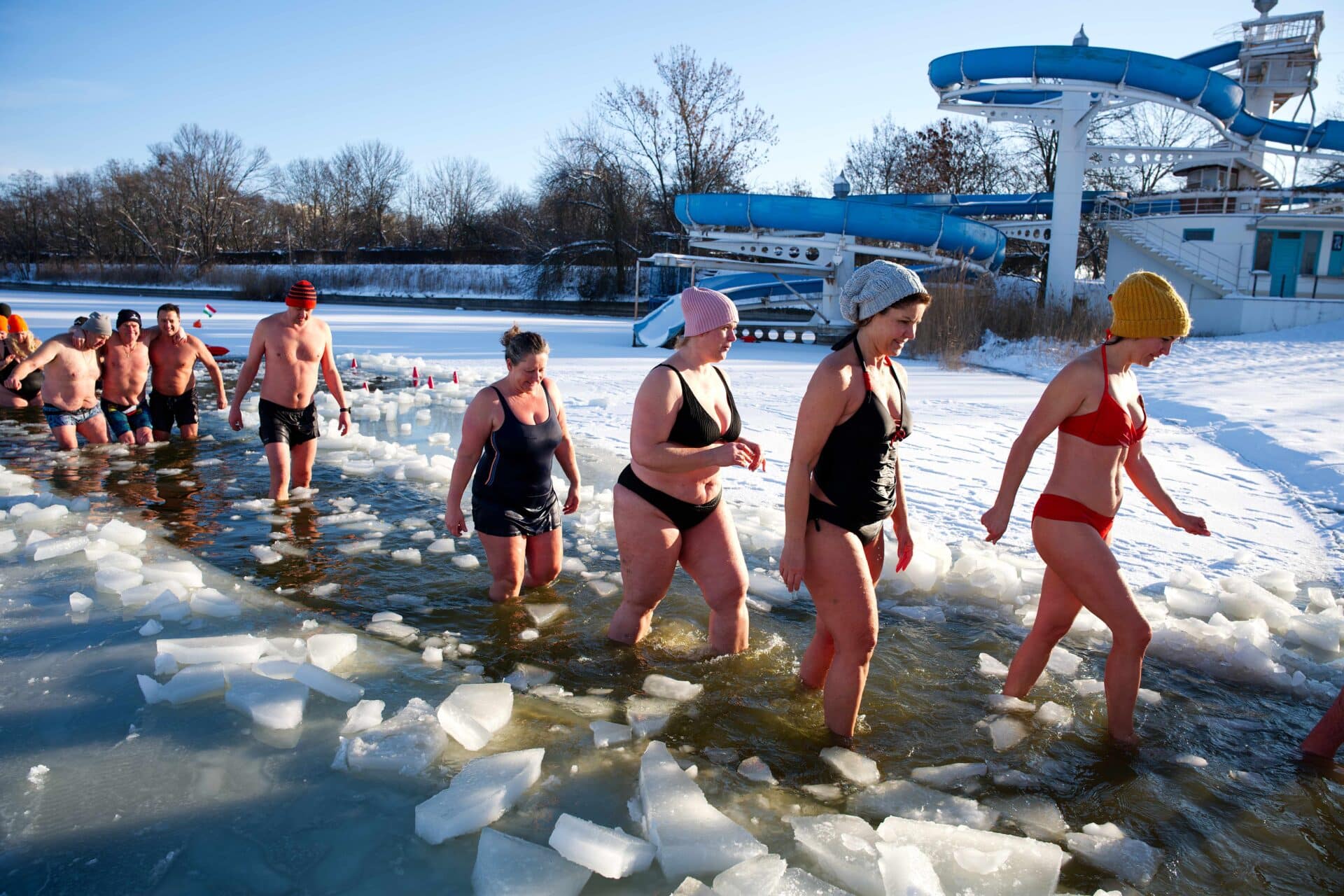 Hogyan is lehet felkészülni a jégtáblák közötti fürdésre? A titok egyszerű: otthon hidegvizes zuhanyokkal kell edzeni, érzelmileg el kell engednünk a hideghez való negatív viszonyulásunkat. A mostani időjárás senkit nem tántorított el a csobbanástól, egészen március végéig minden hétvégén lehet csatlakozni a legeslegbátrabbakhoz, mondta a szervező.