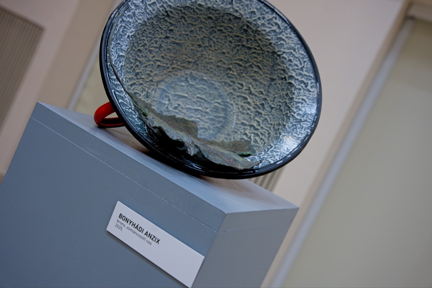 A „Kényes egyensúly”-ra reflektáló „Kénytelen egyensúly” című kecskeméti tárlatában nagyméretű újrahasznosított alumíniuminstalláció, hatalmas fa dézsa pici, mesebeli erdővel a peremén, a kékfestő mesterség nyomódúca két szál rézből készült fűszállal, egy legalább százszorosára felnagyított sulyom-mag, egy üvegburába foglalt fűszál (Terembura), vagy épp egy, a palackszárítók nyomán elgondolt fűszárító – mind-mind olyan művek, amelyben Gálhidy a természettel való kapcsolatáról beszél a maga csendes, kontemplatív módján.