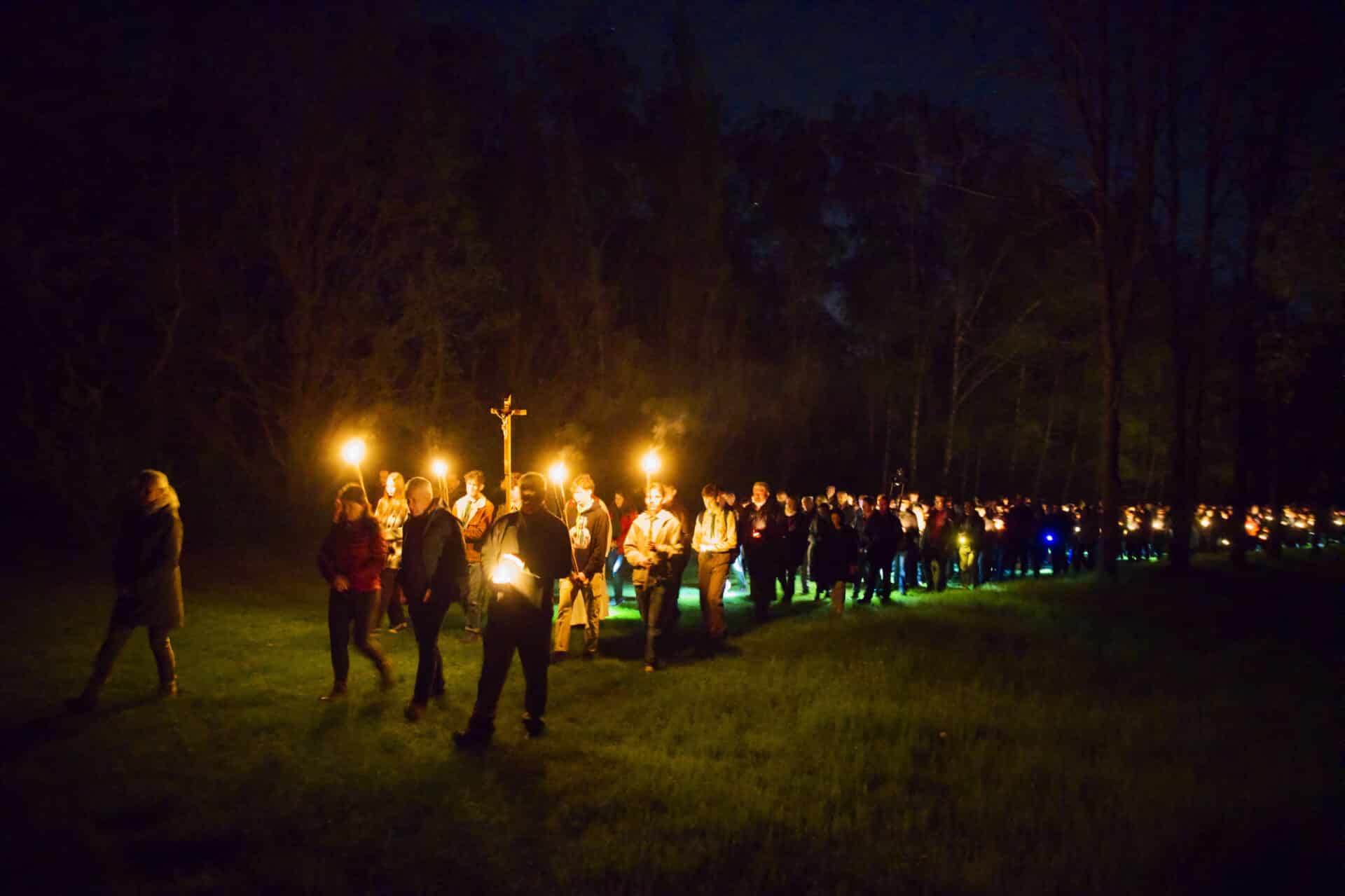 A keresztút ezúttal is az arborétum székelykapus bejáratától indult és a Mária-kápolnához jutott el. A Hatvani Pál Cserkészcsapat által szervezett keresztút minden stációjánál rövid elmélkedés és ima segítette a hívek elmélyülését, a stációk közötti séták során egyházi énekeket énekeltek. Krisztus szenvedéstörténetének átélését elgondolkodtató tanúságtételek is segítették.