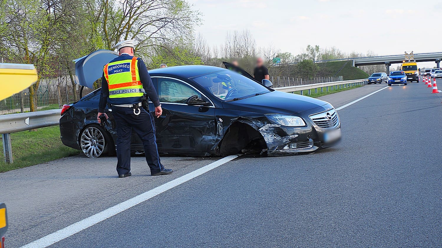 Ketten sérültek meg, amikor két személyautó ütközött az M5-ös autópályán, Kisteleknél.