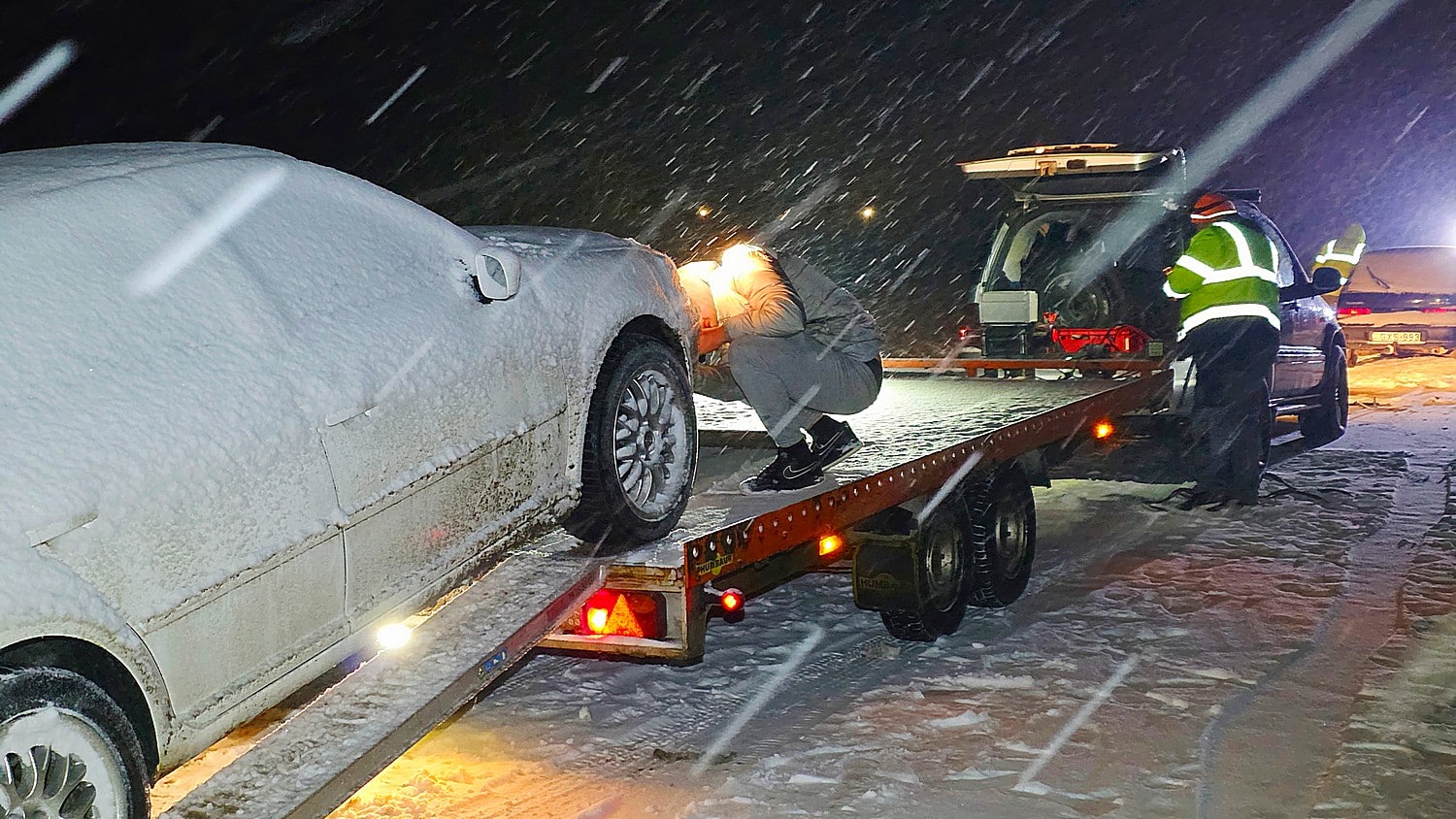 Ketten sérültek meg, amikor félfrontálisan ütközött két autó Tiszaug határában az esti órákban, a havas úton.