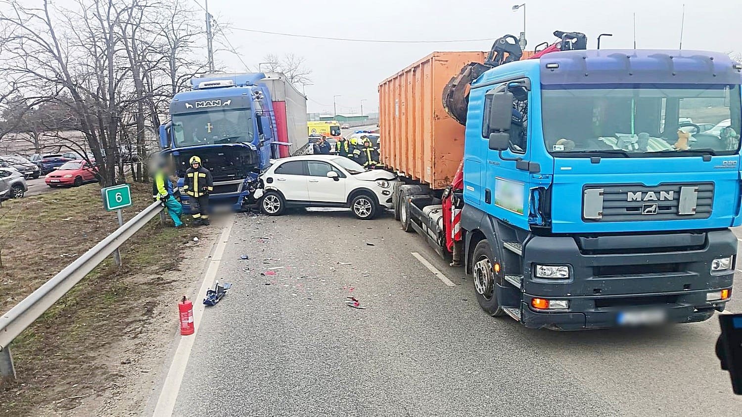 Két kamion és egy gépkocsit ütközött