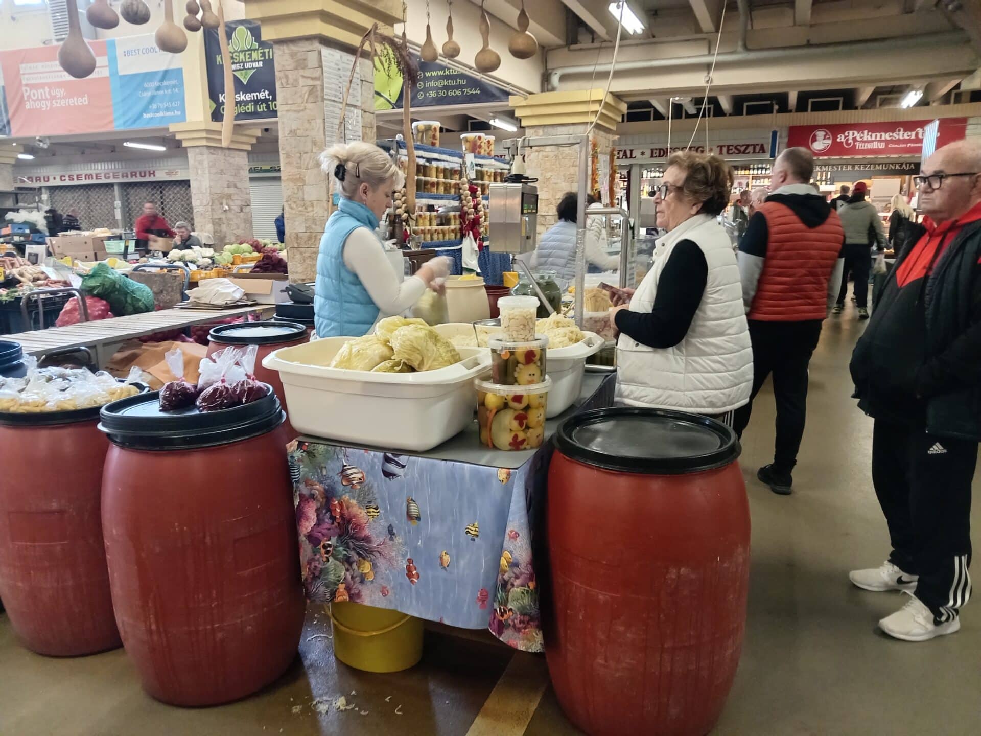 Az árak nem alacsonyak. A savanyúságokat árusító sor egyik eladója megemlítette, hogy egyes termékeinek az árát 10-15 százalékkal kellett emelnie, mert a költségek változtak. Ő azonban nem panaszkodott a forgalomra. A savanyú káposzta kilója 1200-, a cékla 1800-, a csalamádé 1800 -, a csemege uborka 1800-, a dinnye-, a paradicsom ára 2000-, a fokhagyma 5000-, a töltött paprika 2000-, a kovászos uborka kilója pedig 2300 forint volt.