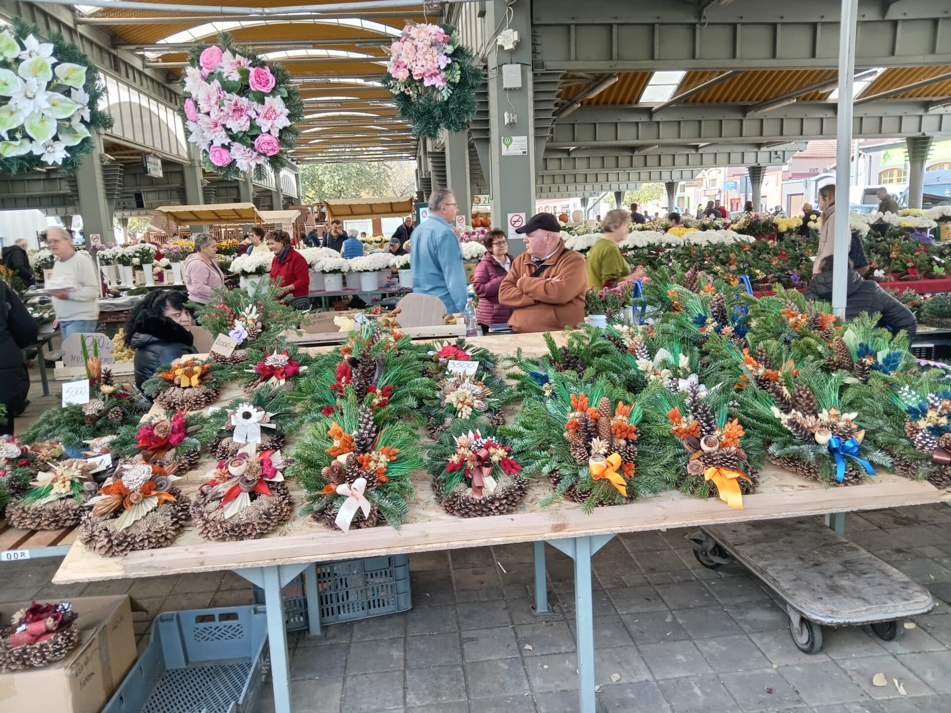 Óriási virág választék, feldíszített koszorúk ezreivel és a szokásos piaci termékekkel várták az árusok szombat reggeltől a vásárlókat a kecskeméti belvárosi piacon. Kecskeméten. A vevők azonban nem rohanták meg az eladókat, talán azért nem, mert sokan már az előző napokban bevásároltak szombatra. Ma ugyanis a nagy élelmiszerüzletek zárva vannak. A piaci eladók, ahogy minden szombaton, így ma is várták a vásárlókat, akik jelentős része otthon maradt. Az egyik árus szerint talán azért, mert nem tájékozódtak arról, hogy november 1-én Mindenszentek ünnepén is nyitva van a piac. De az is lehet, hogy a családok az elhunyt szeretteik nyughelyeit vidéken, vagy éppen Kecskeméten a mai nap keresik fel, így nem maradt idő piacolni. Volt, aki magas minőségű paprikát egyéb zöldséget és virágot is hozott Csongrád környékéről. A gyönyörű kápia paprikáért 1500 forintot kért a TV paprikáért egy ezrest. Mint mondta, ez a nap veszteséges, de ezzel számolnia kell időnként. Az egyik virágárus annyit mondott, hogy nyolc óráig alig volt vevője, azt követően is csak szállingóztak az emberek.