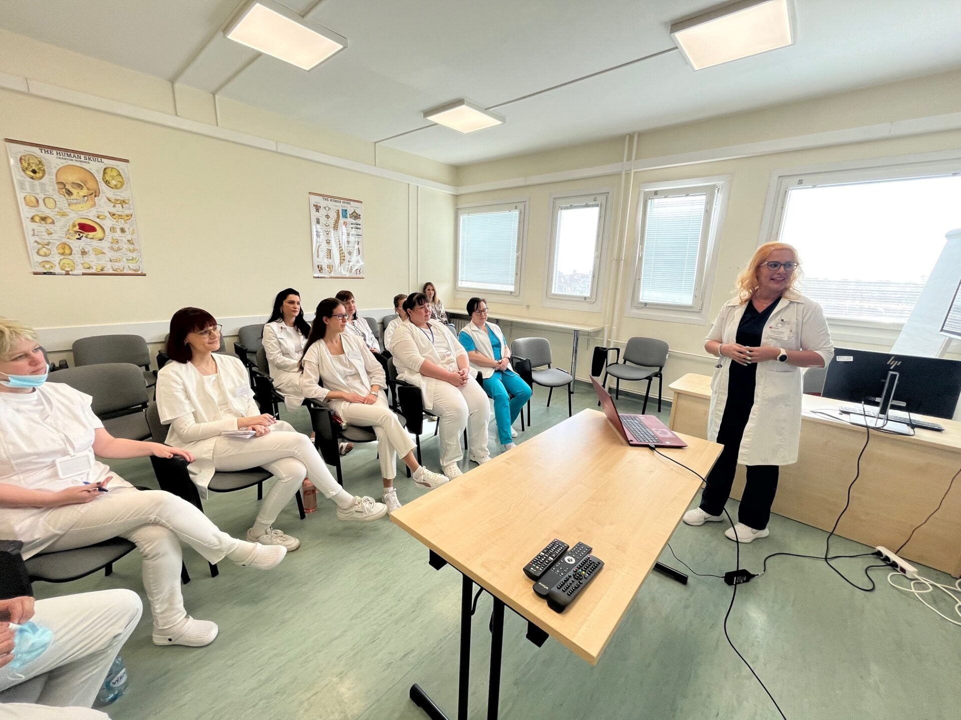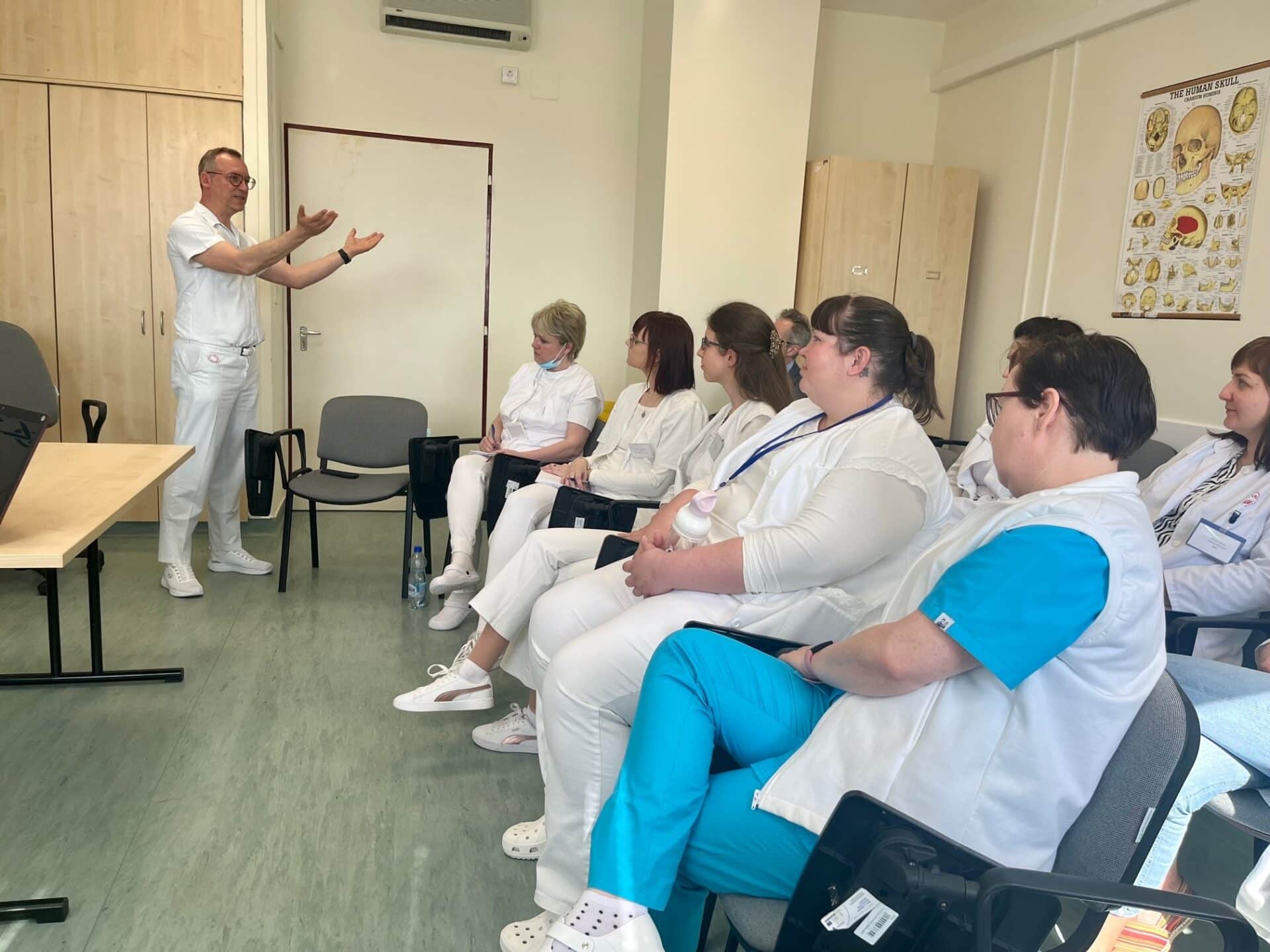 A hallgatókat és a munkatársakat dr. Óváry Csaba PhD, MSc főigazgató, vármegyei intézményvezető és dr. Fülep Zoltán a Központi Aneszteziológiai és Intenzív Terápiás Osztály osztályvezető főorvosa köszöntötte.