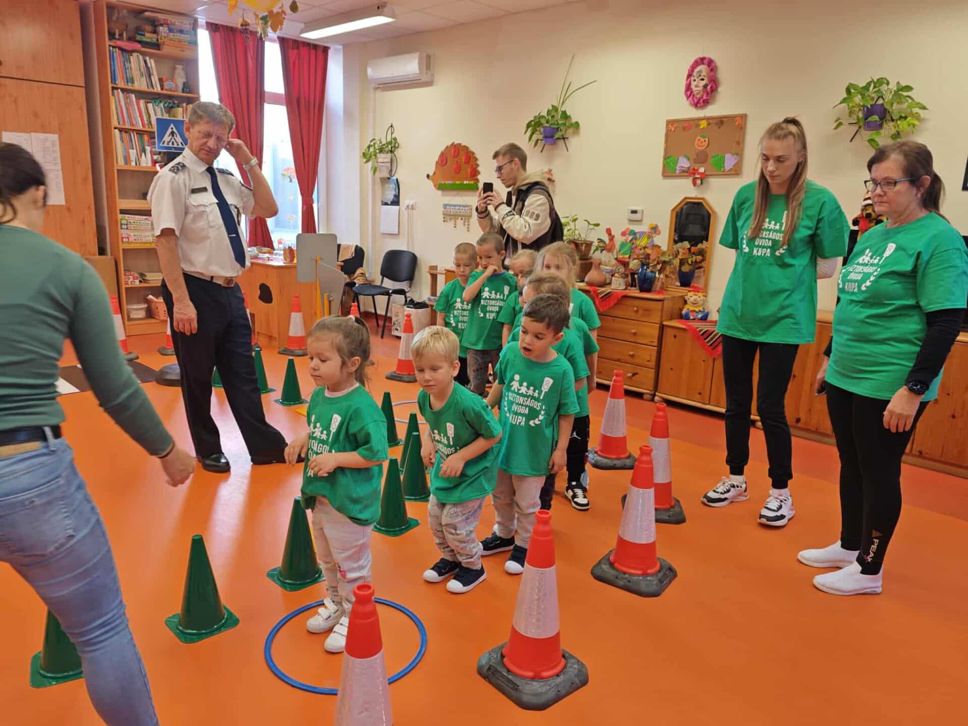 Az óvoda három helyszínén zajlott a verseny. Volt, ahol hangjuk alapján kellett felismerniük a különböző közlekedési eszközöket a gyerekeknek, máshol pedig egy sötét sátorból kellett kiválasztaniuk a különböző láthatósági eszközöket. A legizgalmasabb helyszín pedig a rendőrség közlekedési lámpákkal felszerelt gyakorlópályája volt, ahol a gyalogos közlekedés szabályaiból vizsgázhattak az ovisok. A feladatokat leggyorsabban és legügyesebben teljesítő Csigabiga Óvoda nyerte el a Biztonságos Óvoda Kupát, másodikak az imrehegyi, harmadikak pedig a gátéri gyerekek lettek. Decatlon utalványokat és társasjátékokat nyertek a versenyen, a legnagyobb jutalom pedig az volt, hogy mindannyian megtanulták a biztonságos közlekedés alapjait.