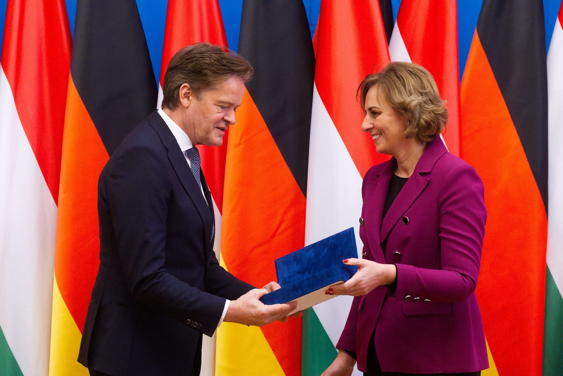 A Külgazdasági és Külügyminisztériumban tartott eseményen ünnepélyes keretek között Szemereyné Dr. Pataki Klaudia polgármester adta át a német szakembernek a város kulcsát.