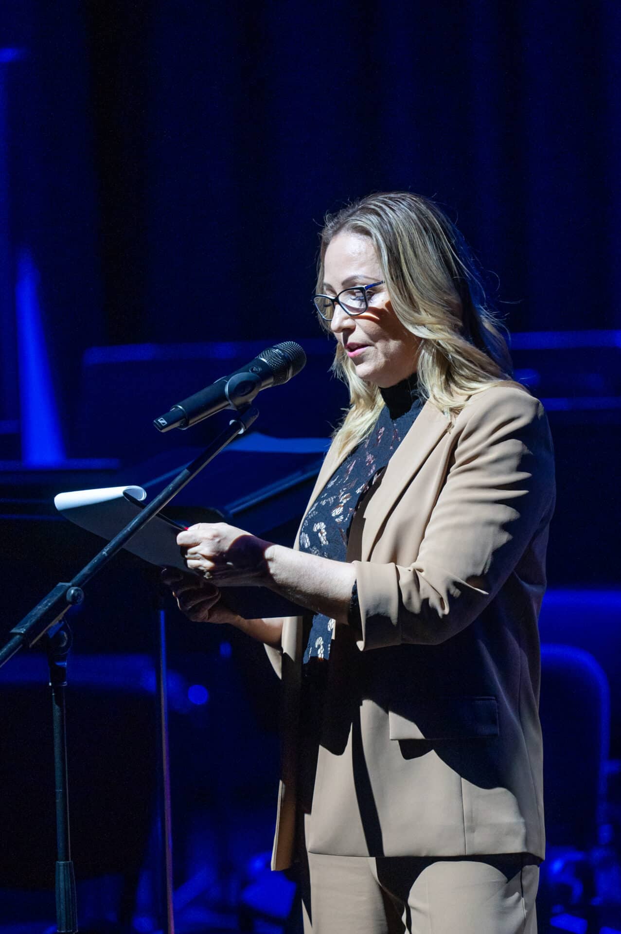 A Kodály Művészeti Fesztivál záróeseményének első perceiben a programsorozat fő szervezője, a Hírös Agóra nevében Danyi Judit köszöntötte a megjelenteket, kiemelten dr. Jerry-Louis Jaccardot, a Nemzetközi Kodály Társaság elnökét és a Kodály nevéhez kapcsolódó zenei, pedagógiai és kulturális eszmék terjesztését elősegítő szervezet elnökségi tagjait, továbbá a helyi kulturális intézmények képviselőit, Kecskemét Megyei Jogú Város Önkormányzatának munkatársait, szervező partnereiket és a zeneszerető érdeklődőket. A Kecskeméti Katona József Nemzeti Színház többek között Magyar Arany Érdemkereszttel kitüntetett színművésze ezután néhány mondatban összegezte a péntek esti ünnepi hangversennyel véget érő összművészeti fesztivál jelentőségét, eredményeit, az elmúlt napok során látottakat, tapasztaltakat. „A zene mindenkié, de hogyan tudjuk ezt valósággá tenni?” – idézte Kodályt, majd így folytatta: „A zenével gazdagabbá tett emberi életről igen sokat elmélkedett városunk világhíres szülötte, a 20. század egyik legnagyobb zeneóriása. Kodály azon fáradozott, hogy a zenét a tömegek számára is elérhetővé és élvezetessé tegye, mert felismerte, hogy a személyiséget, az érzékeket és az intellektust egyaránt fejleszti, mely szükséges minden korban, térben és időben. Az idei Kodály Művészeti Fesztivál egy héten át 21 programelemmel, 5 kulturális intézmény részvételével, 8 helyszínen épült a Kodály-inspirációra, a szellemi örökség megidézésére, átélésére szeretett városunkban. Klasszikus hangversenyek, szabadtéri és templomi koncertek, kiállítások, irodalmi est, táncház, koncertfilmvetítés, megannyi színes és változatos program örvendeztette meg a fesztivál látogatóit ebben az évben is. Köszönjük a Nemzetközi Kodály Társaság, a Kodály Iskola, a Kodály Intézet és a Katona József Könyvtár társszervezői, szakmai támogatását, melynek köszönhetően akár koncertjeinken, akár a kísérőprogramokon minden látogató megtalálhatta a számára legizgalmasabb, leginspirálóbb élményt.”