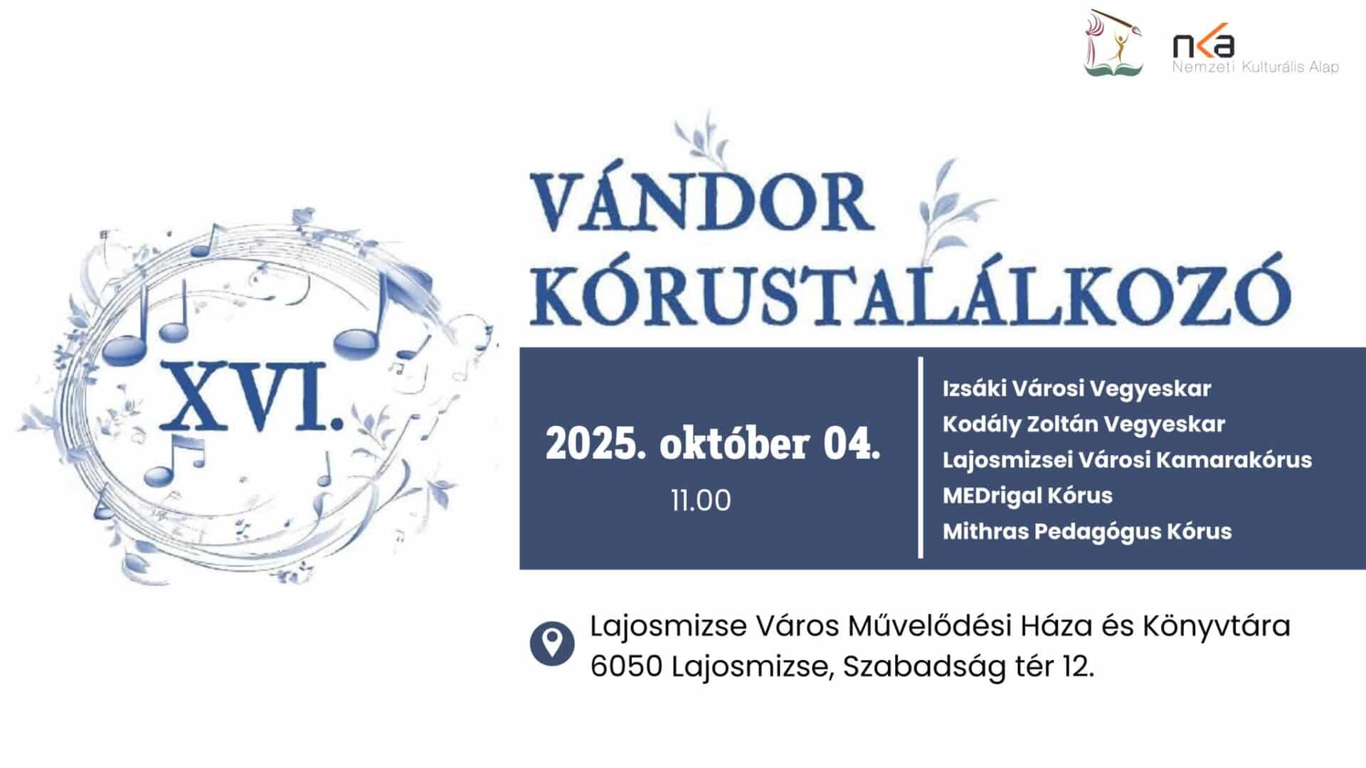 2025. október 4. – 11.00 óra – Lajosmizse Város Művelődési Háza és Könyvtára – 16. Vándor Kórustalálkozó