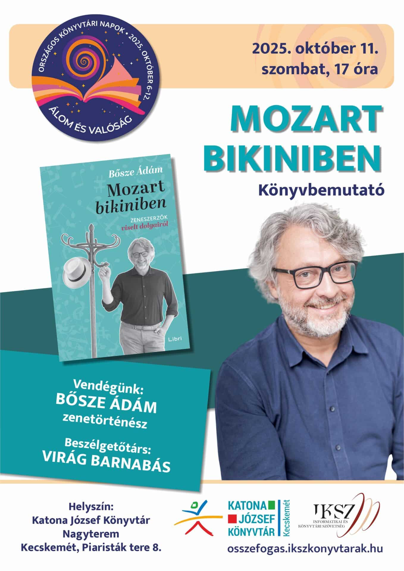 2025. október 11. – 17.00 óra – Katona József Könyvtár – Bősze Ádám Mozart bikiniben című könyvének bemutatója