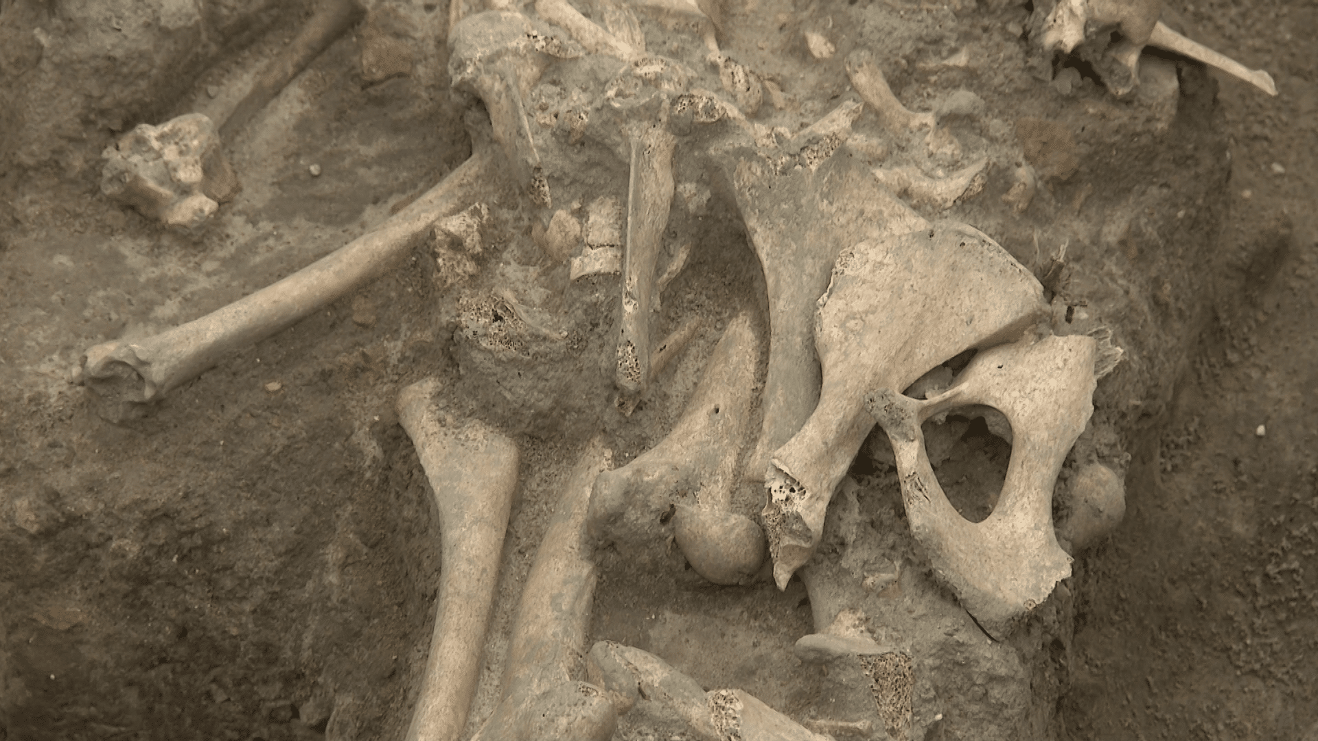 A Kecskeméti Katona József Múzeum igazgatója egy másik mélyedésre is felhívja a figyelmünket, amelybe 2 tinédzser teteme van behajítva. A három 14 és 18 év közötti fiatalra az Árpád-kori Pétermonostorának területén bukkantak a régészek az elmúlt hetekben. A következő napokban már bizonyos, hogy ez a szám 5-re fog emelkedni, ugyanis további két vájatot is azonosítottak már a szakemberek. A fiatalokat a mongolok gyilkolták le 1241 nyarán.
