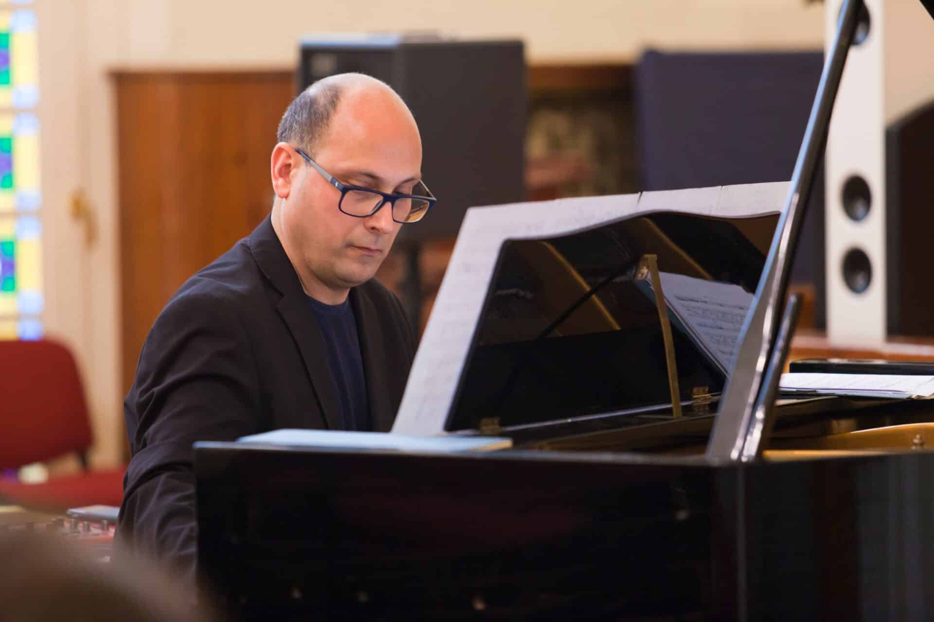 A nemrég Kodály Zoltán-díjjal kitüntetett kecskeméti zeneszerző, Kovács Levente ezekkel a gondolatokkal mutatta be három új darabját. „Az elsőt, a Téli tájkép című zongoraművemet a Pacséron, azaz Vajdaságban született és öregkorát Kecskeméten leélt festőművész, Szilágyi Gábor Téli tájból című festménye ihlette. Ezt követi a Vihar, eső és szivárvány című hegedűre és zongorára írt nagyszabású duóm. A 2009-es vázlatok alapján készült, de 2025-ben teljesen újrakomponált zeneművem egy elképzelt filmdráma zenéjeként igyekszik – a zene nyelvén – egyrészt a természeti jelenségeket: a vihar drámaiságát, a mennydörgést, villámcsapásokat, széllökéseket és az eső csepegését, valamint a szivárvány szépségét utánozni; másrészt az emberi lélekben és az életben is lezajló konfliktusokkal teli és megnyugvó, örömökben gazdag pillanatait átélhetővé tenni és a szépség győzelmének reményét megmutatni. A harmadikat pedig Buda Ferenc Zöld ág, boróka ága… kezdetű, rövid és ritmikus sorokból felépített költeménye ihlette, amelyet szoprán hangra, szintetizátorra és zongorára hangszereltem. A Kiskunság legkülönlegesebb növénye a boróka. A kellemes illatú, a terméketlen talajon a hideg, a meleg és a szárazság végletes megpróbáltatásait kibíró örökzöld növényként az1956-os forradalomban való részvétele miatt börtönbe vetett, elveit, hitét fel nem adó költő méltó megszemélyesítése.”