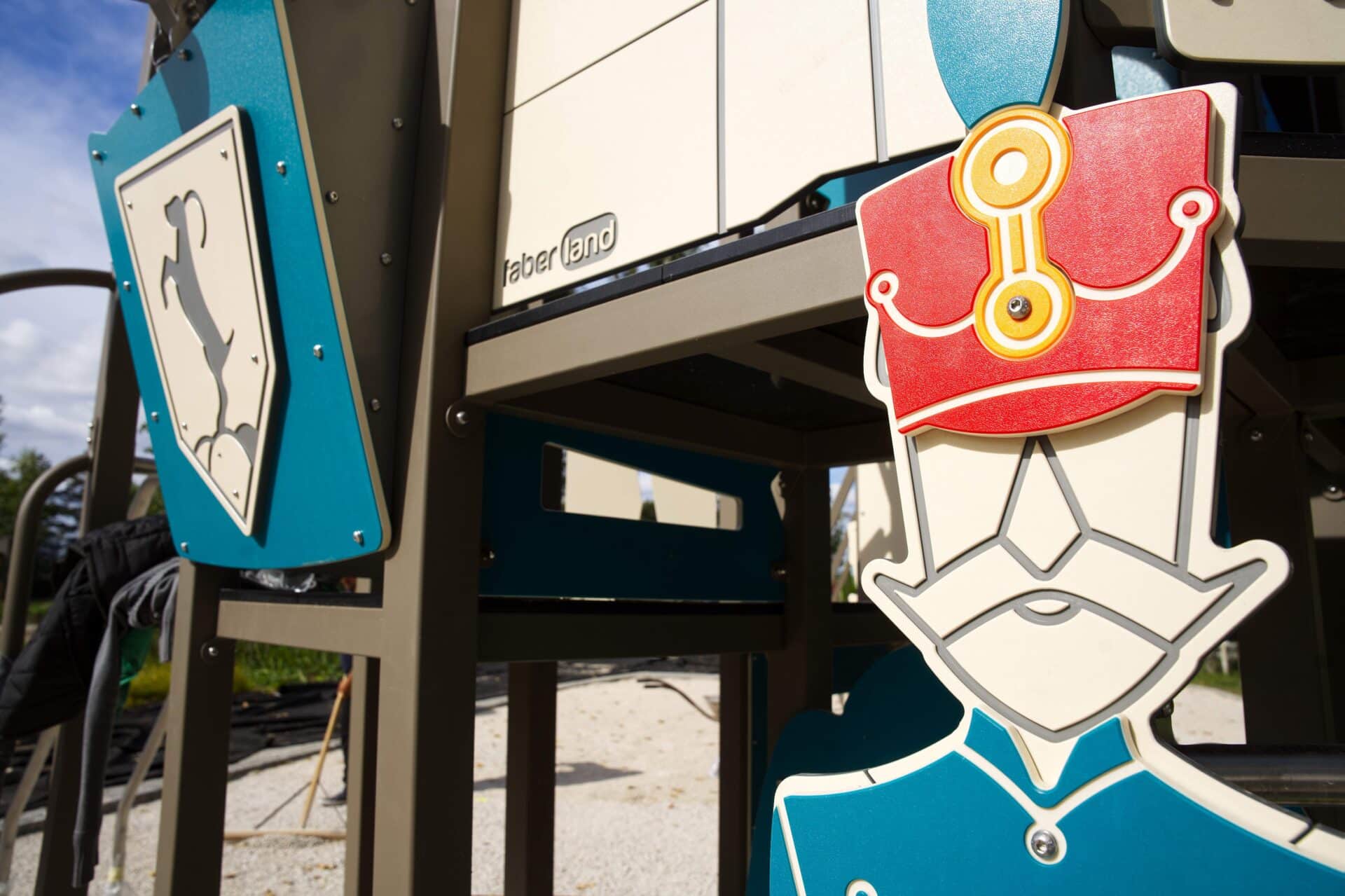Helyet kap egy zenesarok is, amely többek között a Kodály módszer elemeit hivatott bemutatni. A tervezők a különböző fogyatékkal élő gyerekekre is figyelemmel voltak, így inkluzív játszótéri eszközök is beépítésre fognak kerülni. A nagy játszótér egyik jellegzetes része lesz az a 8,5 méter magas csúszdatorony, amely nagyon sok gyermek számára fog élményt nyújtani. A játszótér szimbolikájával erősíti a kecskeméti identitás tudatot azzal, hogy megjeleníti a szecessziós épületeink motívumrendszerét, felidézi az egykori laktanya funkcióját a megjelenő huszár elemekkel. Forgó, hinta, mászóka, libikóka, zenesarok, csúszda, fittnesz- és egyéb rekreációt nyújtó eszközök szolgálják majd a hasznos időtöltést.