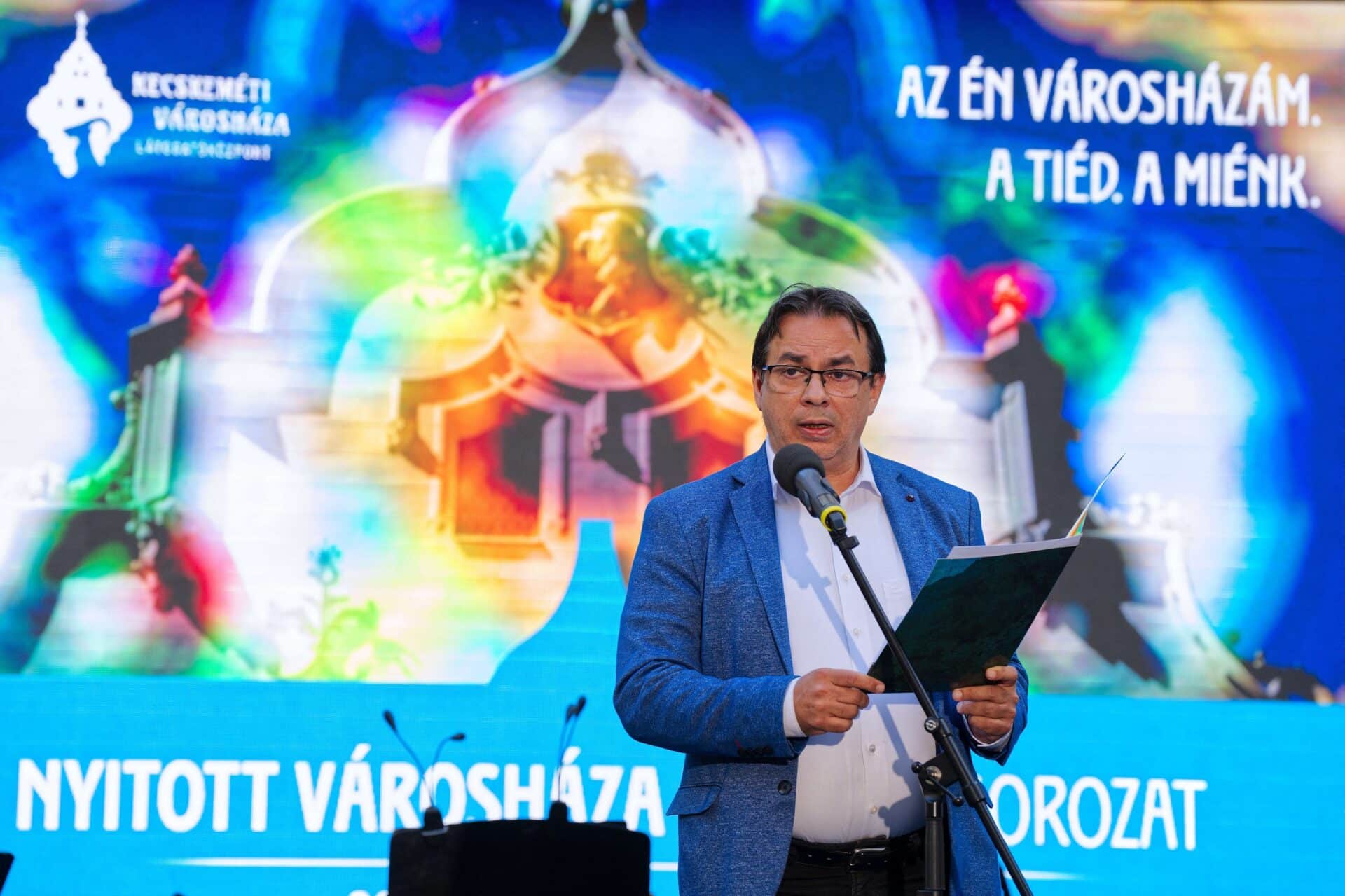 Megnyitó beszédében Bán János alpolgármester kiemelte, hogy a városháza története hosszú és gazdag múltra nyúlik vissza – 2023-ban indították útjára a kezdeményezést, hogy közelebb hozzák a kecskemétiekhez történetét, mindennapi működését és azt a szellemiséget, amit ez a tér képvisel. Ennek kapcsán az alpolgármester egy személyes gyerekkori emléket is megosztott a jelenlévőkkel.