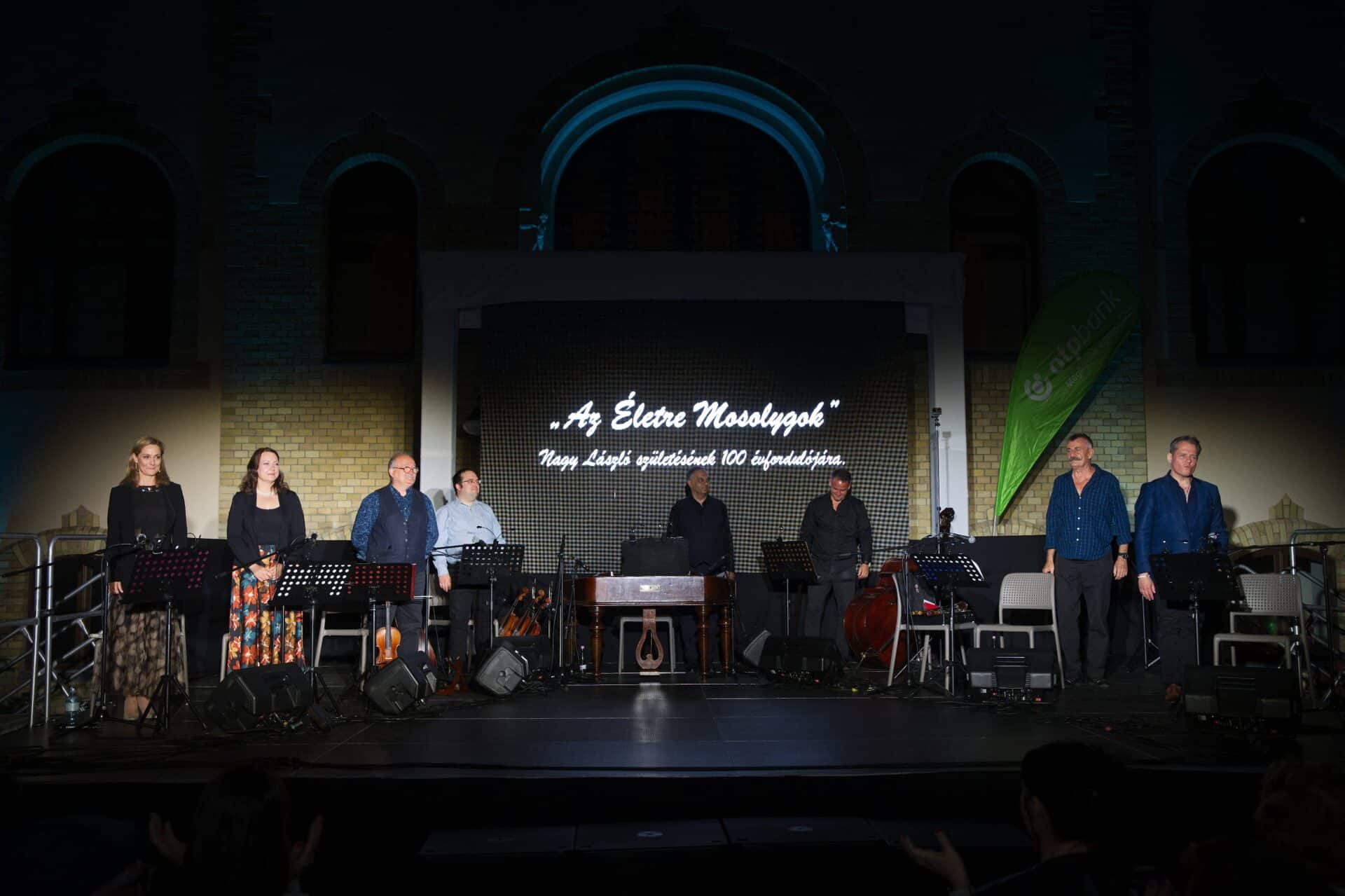 A kiállítás megtekintése és közös pezsgőzés után a jelenlévők Csík János és művészbarátai koncertjét hallgathatták meg Az életre mosolygok címen, melyben Nagy László születésének 100. évfordulója alkalmából tisztelegnek a költő munkássága előtt. Felidézték a bolgár versfordításai kapcsán népzenei kötődését, magyar identitásának mélységét, a költészetében élő érzékenységét. Mindezt a klasszikus és a dzsesszes hangzású kortárs zene sajátos ízeivel, a magyar népzene erejével.